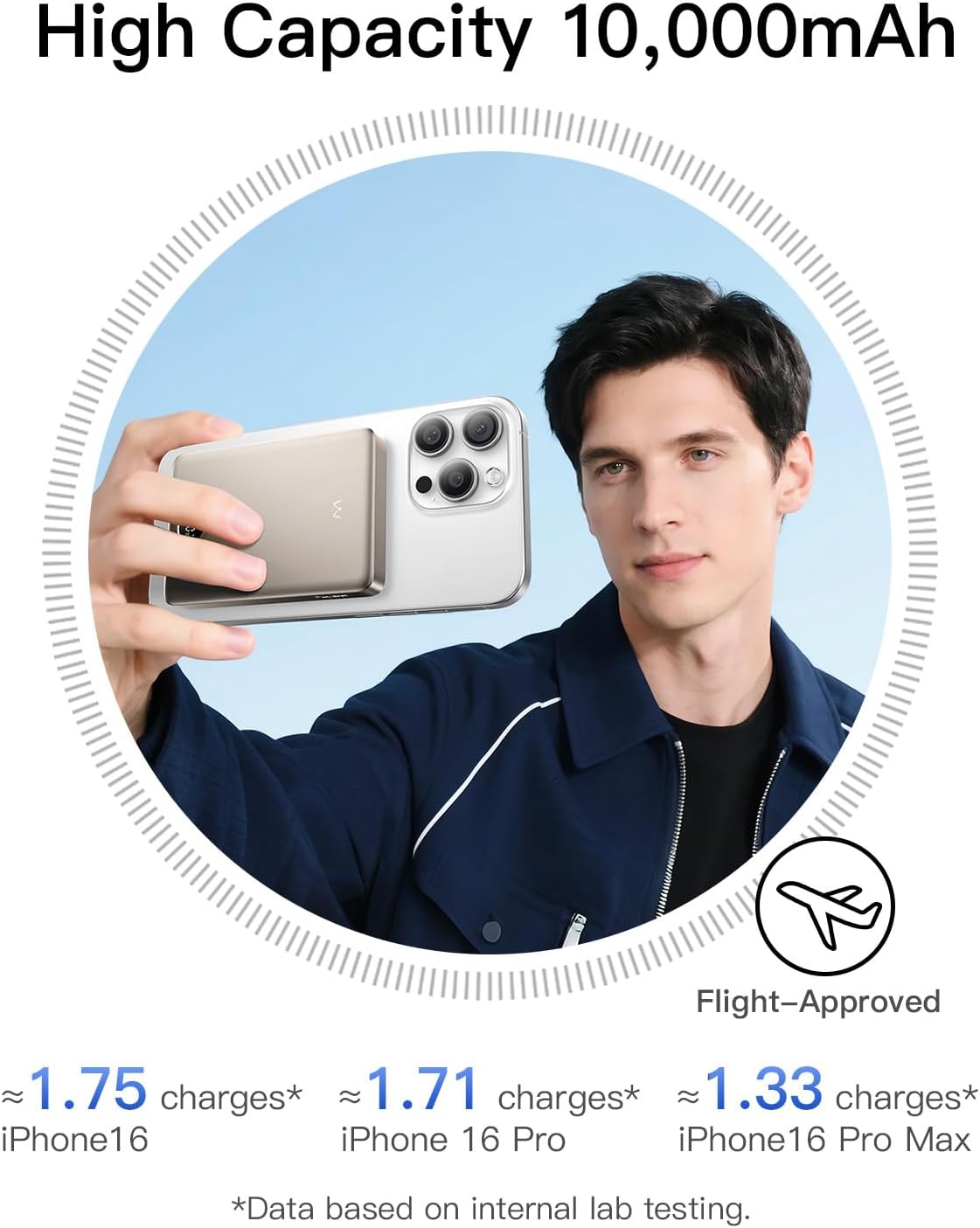 - Strong-Magnet Charging: This wireless magnetic power bank supports 15W charging for iPhone, and the magnetic force can reach 12N (2.65LB) regardless of whether it is paired with a magnetic phone case. When the phone is low on power, the power bank can be tightly attached to the phone for charging, and you don't have to worry about forgetting to bring the charging cable.