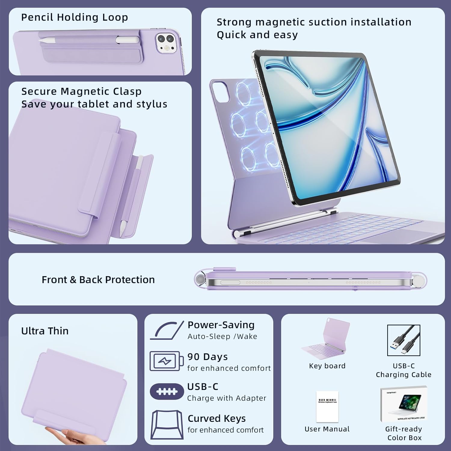 - Included Components : Magic-Style Keyboard Case * 1, USB-C Cable * 1, User Manual