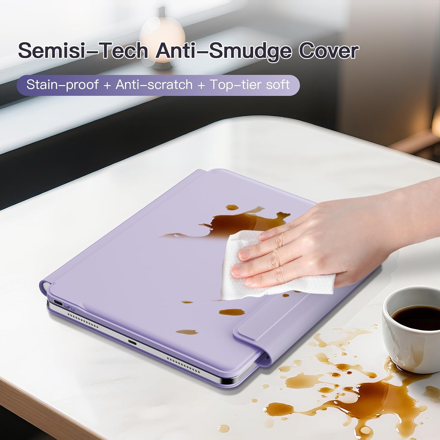 - Stain-Resistant Surface: The SemiSi-tech technology is combined with PU leather, enabling you to easily wipe off the stains on the surface. Enjoy the soft and sweat-proof texture as well as the fluffy lining, without the worry of scratching your air 13 iPad.