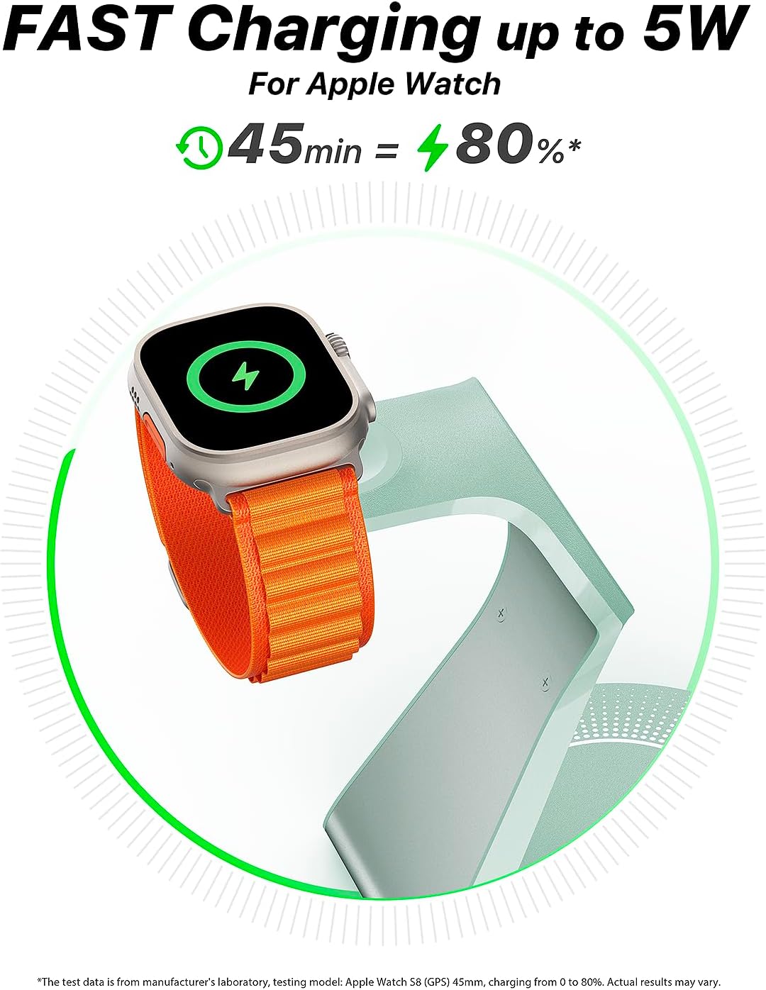 - Fast Charging for Apple Watch: Up to 5W Apple Watch charger. Charge Apple Watch 9 up to 80% in just 45 min—ideal for a fast charge before bed, ensuring it's ready to monitor your sleep all night