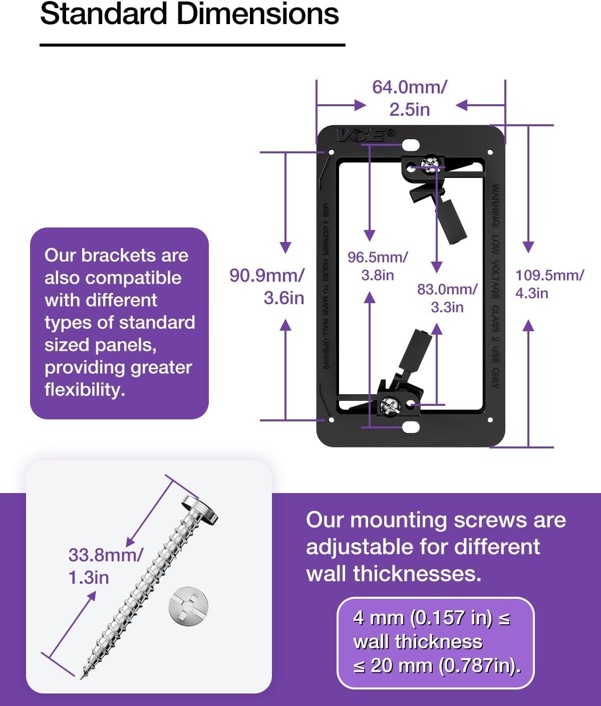 - EFFORTLESS INSTALLATION: This low voltage bracket is extremely easy to install, simply cut holes in the wall according to the 4 corner hole markings, then insert the bracket and tighten the two clamping wings to complete the installation