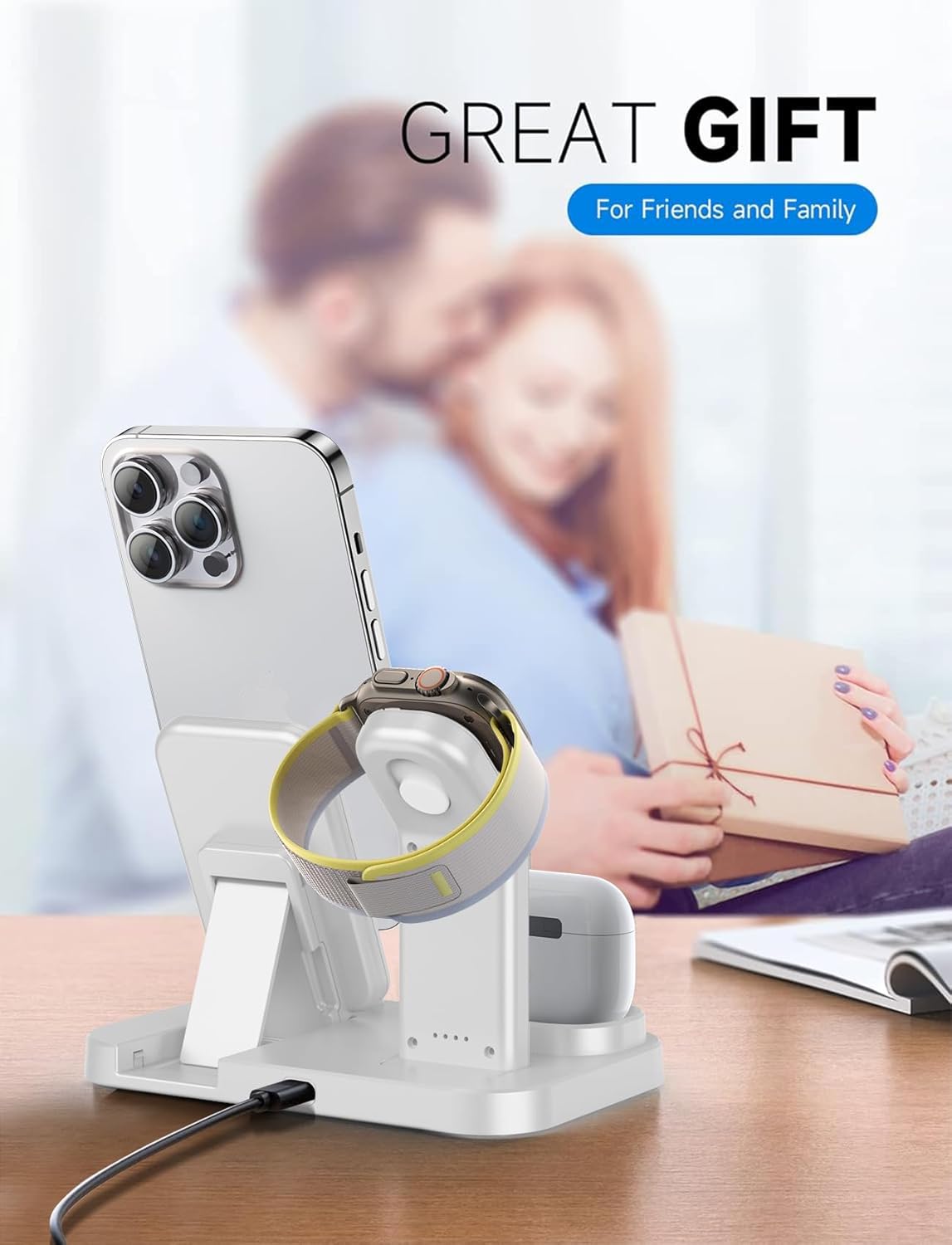 - 【Universal Compatibility】RJR cell phone charging station is compatible with Apple devices. Compatible with iWatch series 9/8/7/6/SE/5/4/3/2/1 & Apple iWatch Ultra/Nike+/Sport/Edition/Hermès; Compatible with AriPods Pro/3/2/1; Compatible with iPhone 16 series/ 15 Pro Max, iPhone 15 Pro,iPhone 15 Plus,iPhone 15/iPhone 14 Pro Max/14 Pro/14/13/12 Pro Max/12 Pro/12/12 mini/11 Pro Max/11 Pro/11/SE (2nd generation)/XS MAX/XS/XR/X/8 Plus/8