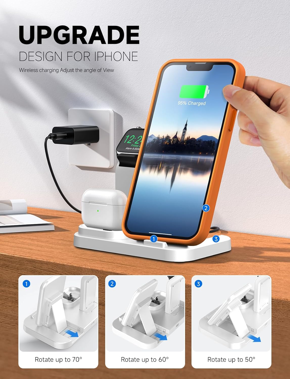 - 【Latest Upgrade for iPhone Wireless Charging】The upgraded design of this wireles charging station features 3 angel of view up to 70°, which is 30° more than other night charging stations.