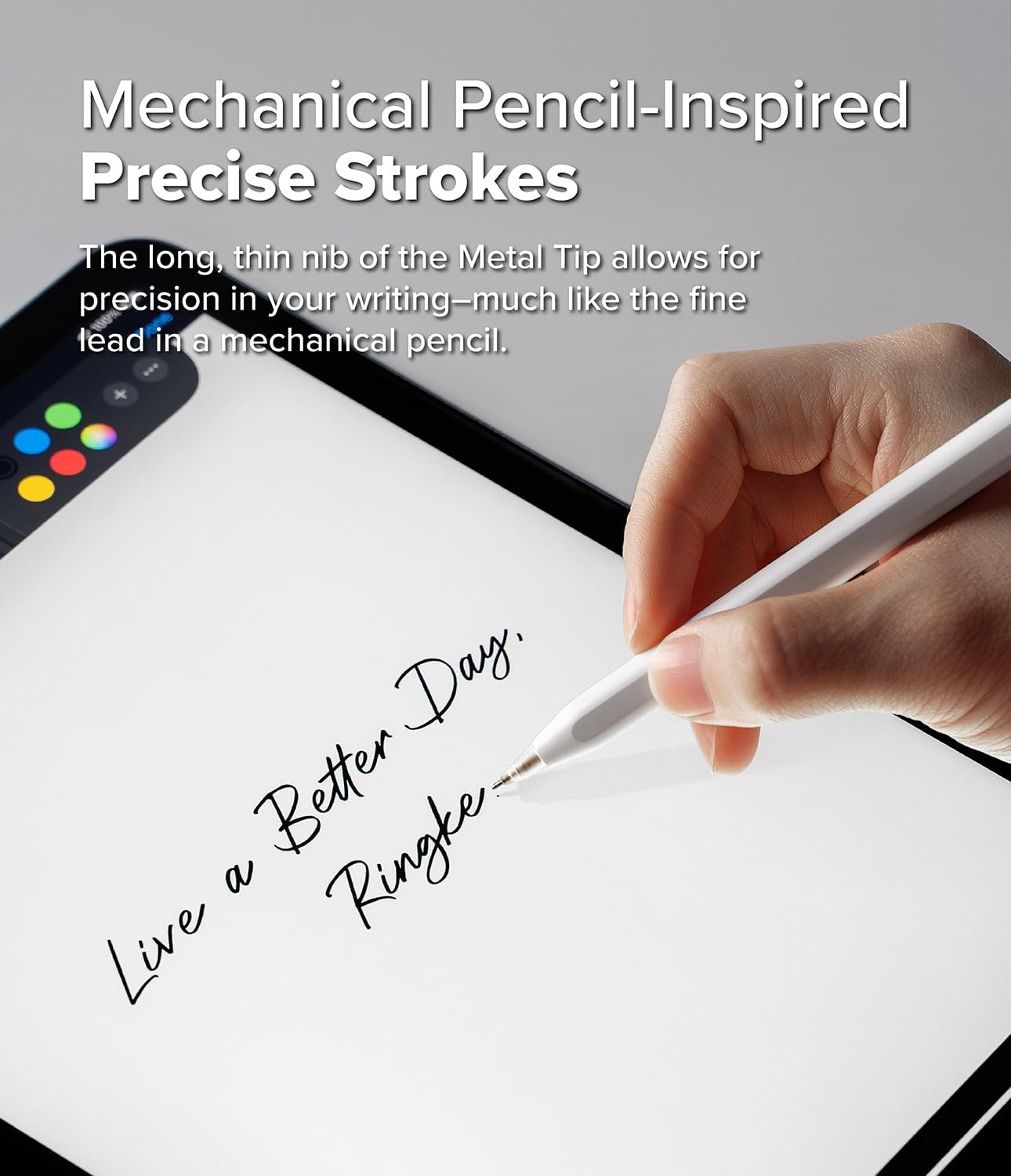 Ringke Apple Pencil Tips [3 Pack/Replacements for All Generations] Compatible with Apple Pencil Pro, 1st, 2nd Gen, USB-C Accessories, Clean & Neat Feel Nib - Metal (Matte Clear)