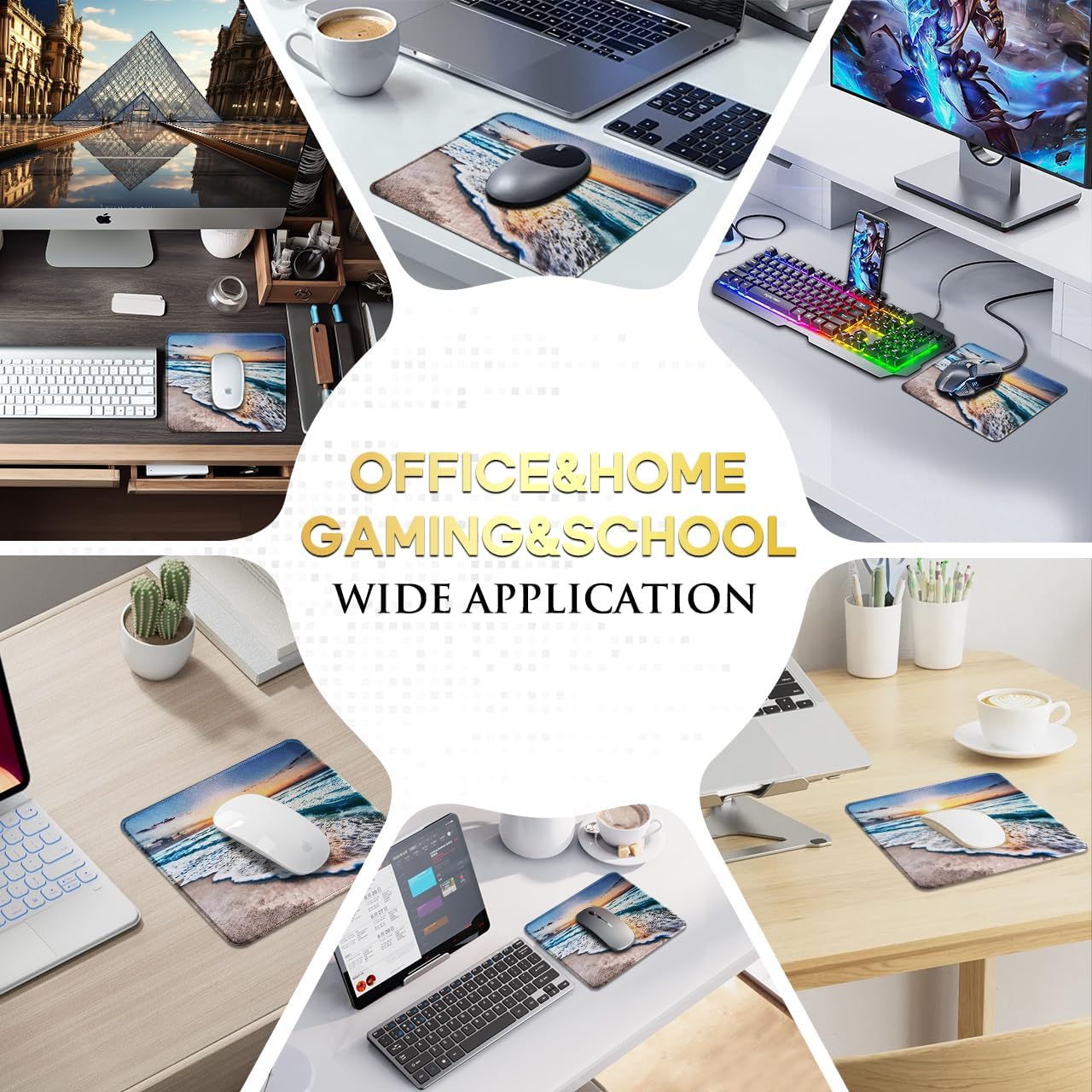 JIKIOU 3 Pack Mouse Pad with Stitched Edge, Comfortable Mouse Pads with Non-Slip Rubber Base, Washable Mousepads Bulk with Lycra Cloth, Mouse Pads for Computers Laptop Mouse 10.2x8.3x0.12in Beach