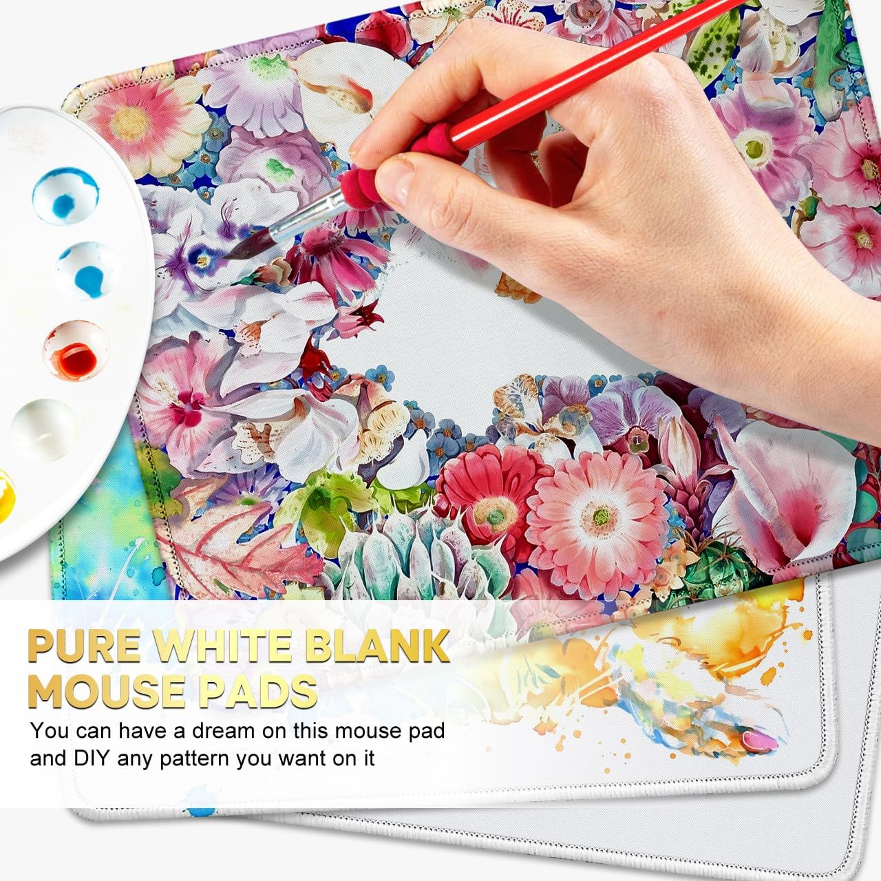 JIKIOU 3 Pack Mouse Pad with Stitched Edge, Comfortable Mouse Pads with Non-Slip Rubber Base, Washable Mousepads Bulk with Lycra Cloth, Mouse Pads for Computers Laptop Mouse 10.2x8.3in Blank White