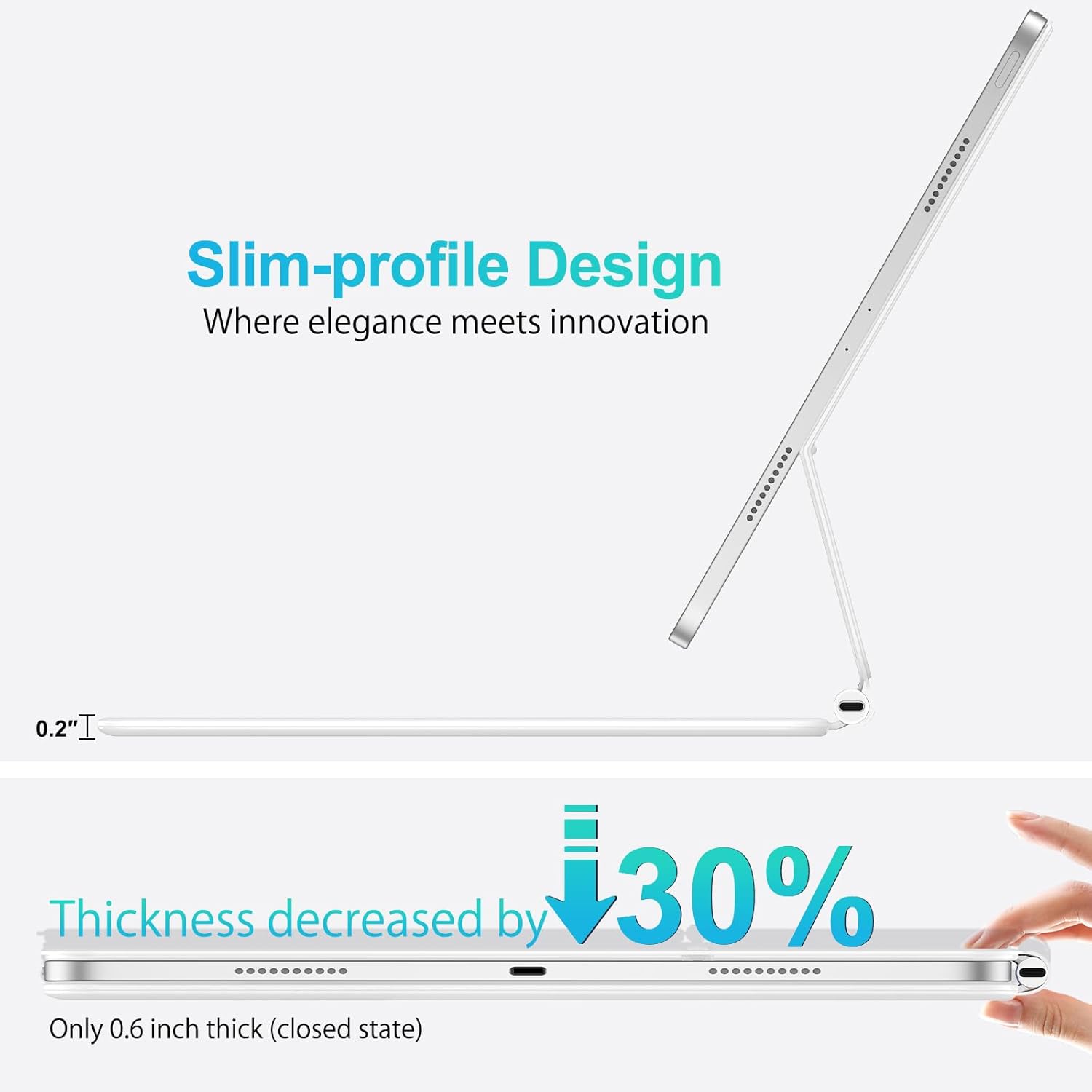 - ๐๐ฅ๐ญ๐ซ๐-๐๐ฅ๐ข๐ฆ & ๐๐จ๐ซ๐ญ๐๐๐ฅ๐๏ผThis slim keyboard is designed to be ultra-lightweight. At just 0.2 inches thick and weighing 1.3 lbs, the compact size and lightweight construction make it incredibly portable, allowing you to use it on the go.