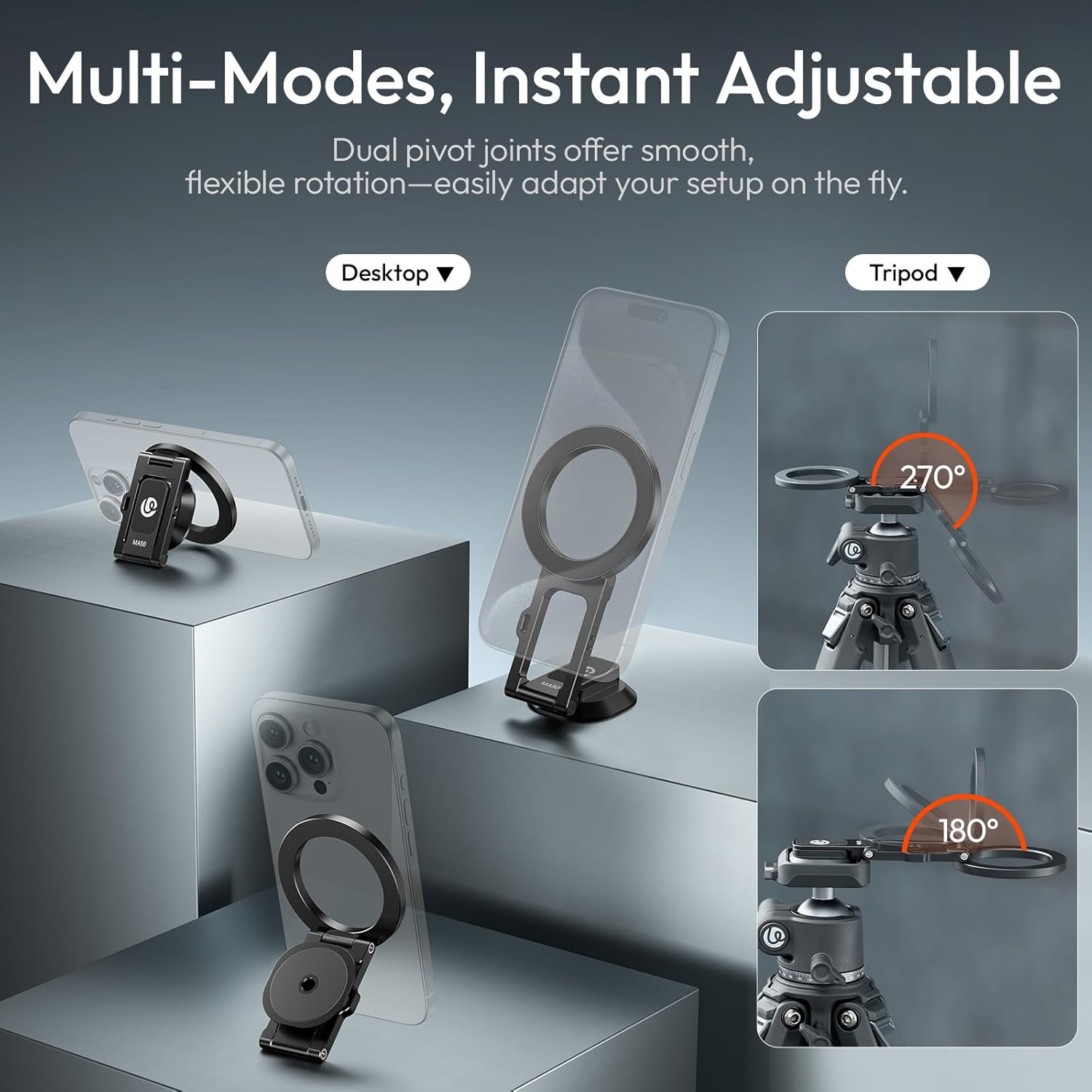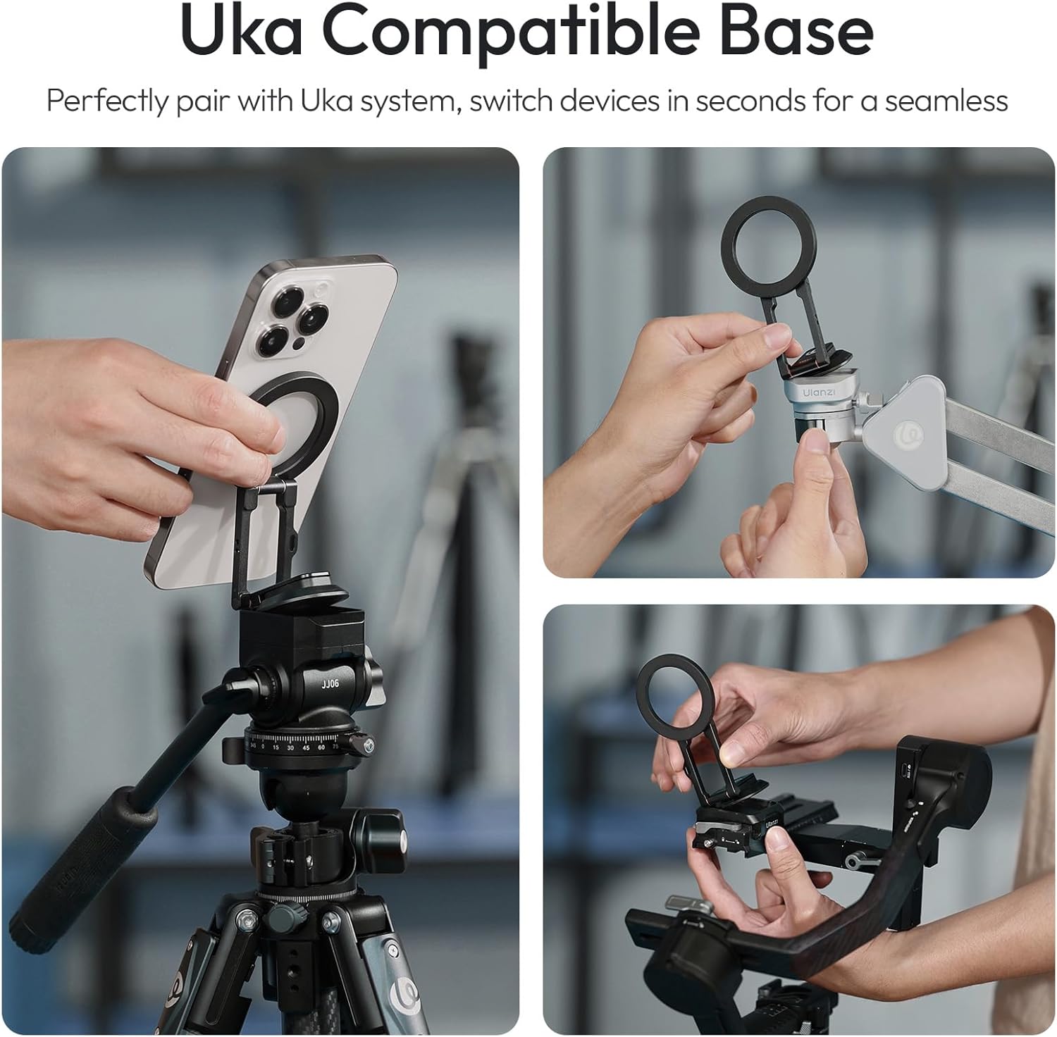 - 【Universal 1/4" Screw Port- Unleash Creativity】Ulanzi magnetic phone stand can easily attach tripods, magic arms, or selfie sticks for stable filming, dynamic angles, or group shots. Ideal for content creators, fitness vloggers, and photographer. No adapters required—expand your setup for Zoom calls, outdoor shoots, kitchen recipe videos or live streams with this versatile phone holder.