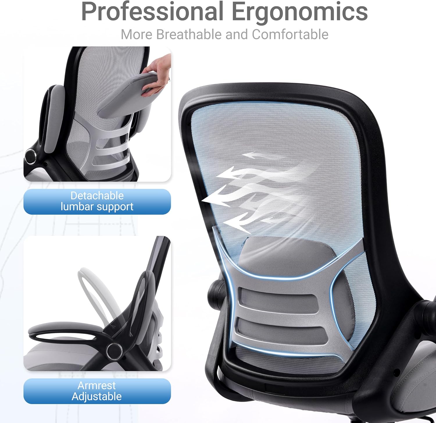 - Adjustable Features: Our adjustable comfy office chair features comfortable 90° flip-up armrests that allow your arms and shoulders to rest comfortably and can be flipped up to save space effectively when not in use. This stool chair also features an adjustable footrest ring that can be easily adjusted to the most comfortable height for your legs.