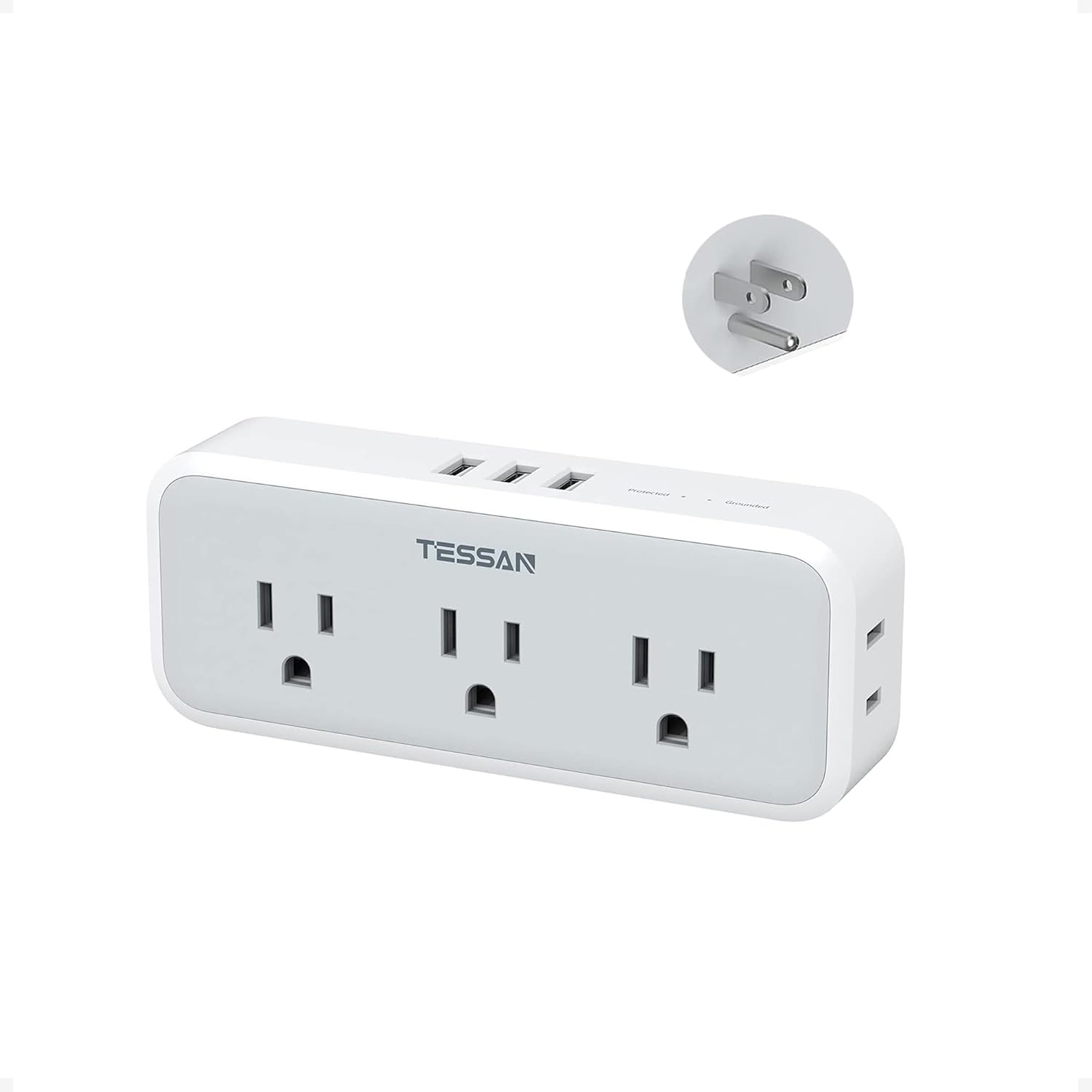 - USB Outlet Plug Adapter: 3 USB ports can detect charger devices and deliver optimum charging speed up to 3A (2.4A max per port), ideal for cell phone, tablet, earphone, etc
