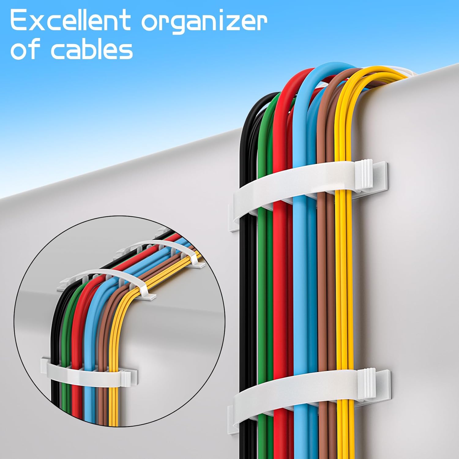 XHF 30pcs Adhesive Cable Wire Clips White, Outdoor Cable Management Wire Organizer Cord Holder for Under Desk, Car, Wall, TV PC Ethernet Cable