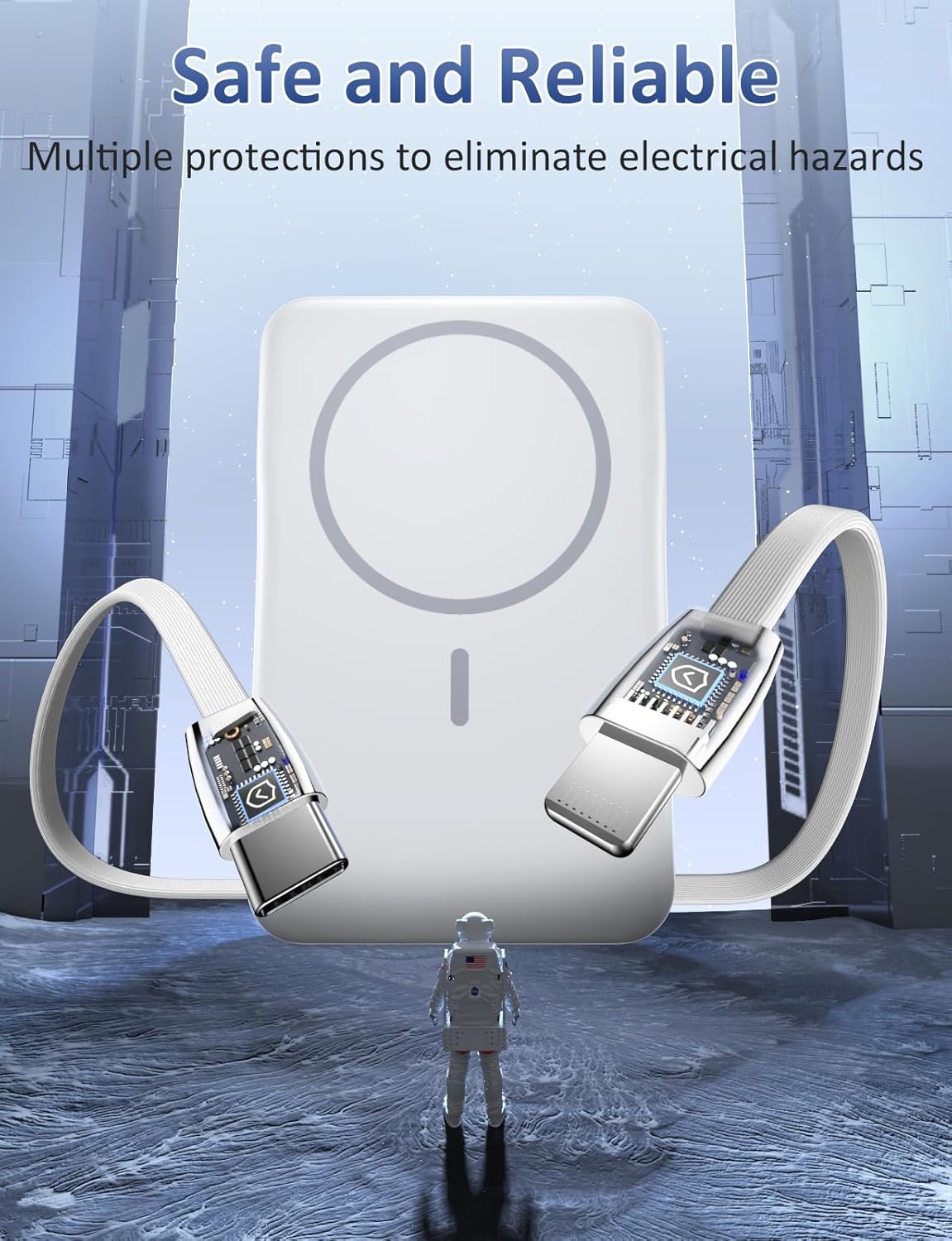 Magnetic Portable Charger, 10000mAh Power Bank, 5 in 1 Portable Charger with Built in Cable, 20W Fast Charging for Magsafe Battery Pack Compatible with iPhone 16/15/14/13 Pro/Pro Max, Samsung Series