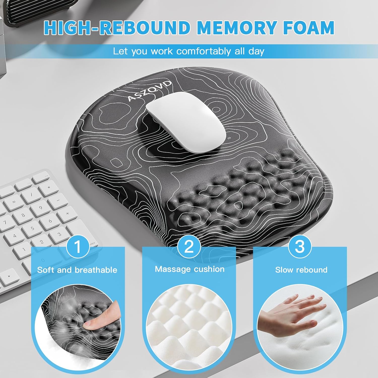 - Carpal Tunnel Relief: The Aszqvd ergonomic mouse pad, its precise ramp angle (8°- 15°) and massage air cushion design provide you with medically-recognized wrist support. This mouse pad with wrist rest actively promotes a natural wrist posture, significantly reducing pressure on nerves and tendons to combat wrist fatigue and carpal tunnel discomfort