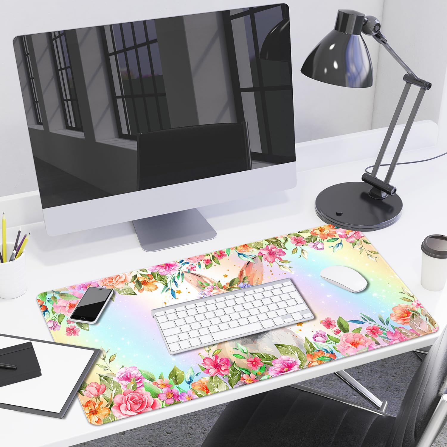 - Large Desk Pad Cute Rabbit: 31.5x15.7 inch mouse pad provides ample room to fit your gaming mouse, full-size mechanical keyboard, and other desk items, to keep your desk neat and clean. Made of heat resistant high density textured rubber which protects your desk from scratches, stains, spills and scuffs.