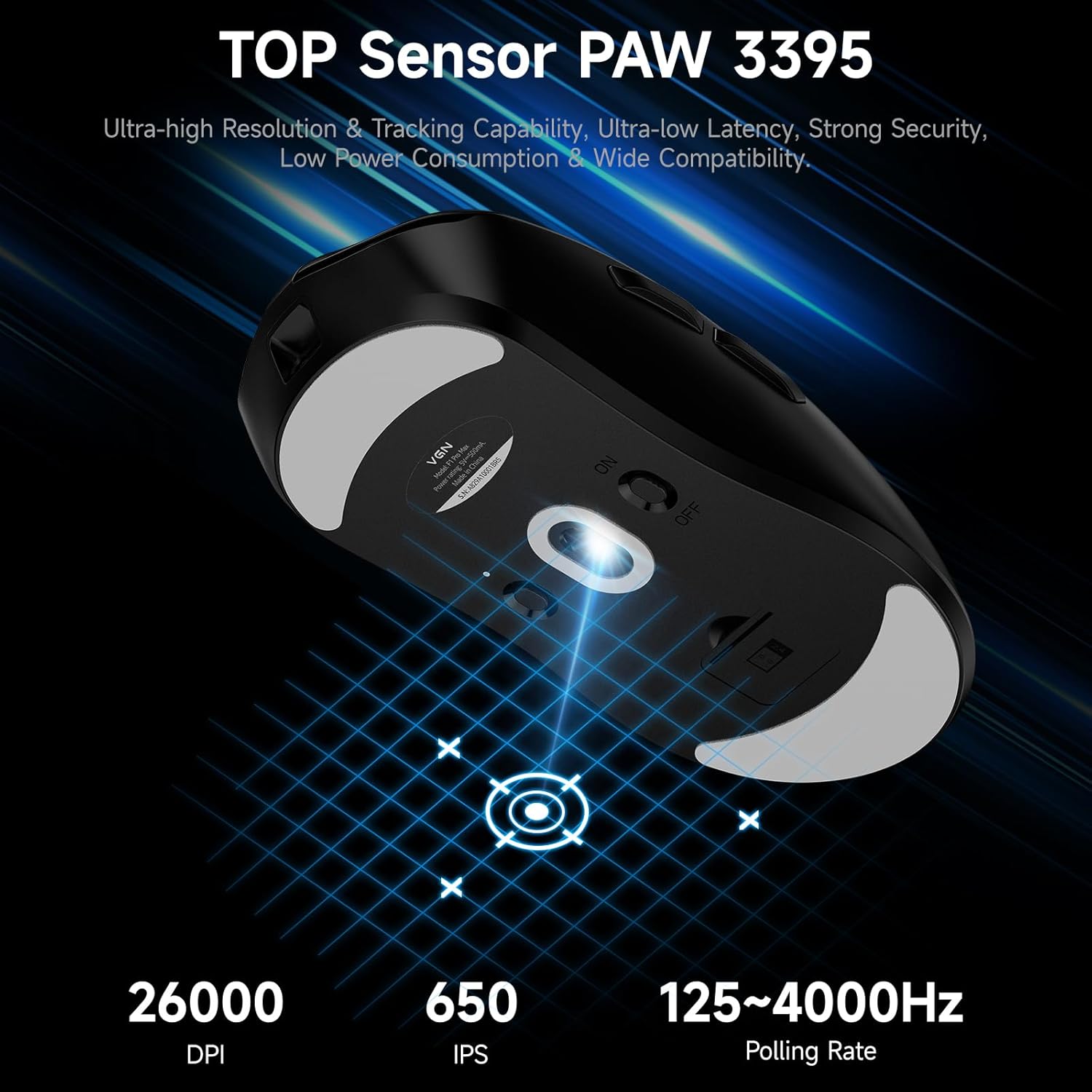 - ăPAW 3395 Optical Sensor for GamingăLevel up your aim with the PAW 3395 â the sensor pros trust. 26,000 DPI (tweak it down to 400 for pixel-perfect Valorant headshots, or crank to 26k for sweeping Apex maps), 650 IPS tracking (so your mouse keeps up when you flick 180° to counter a Warzone camper), and 1000Hz polling (upgrade to 4000Hz with the included high-speed receiver for near-zero latency in COD gunfights). Whether youâre clapping cheeks on PC, laptop, or console â this sensor turns your reflexes into wins