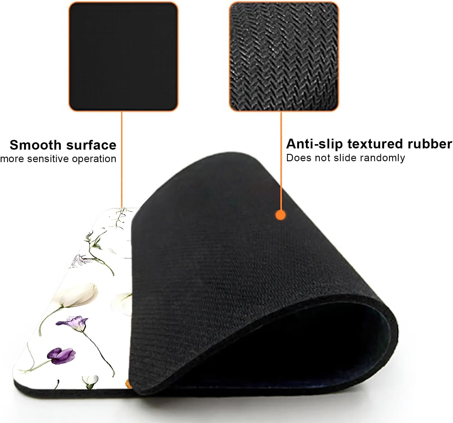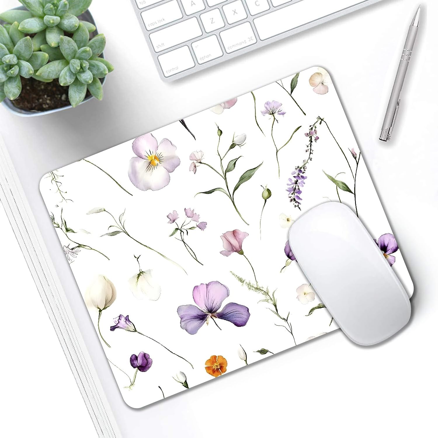 Mouse Pad, Abstract Wildflowers Flower Mouse Pads for Desk, 9.5" x 7.9" Non-Slip Rubber Base Computer Mousepad with Women, Portable Square Design for Wireless Mouse and Pad Laptop Office & Travel