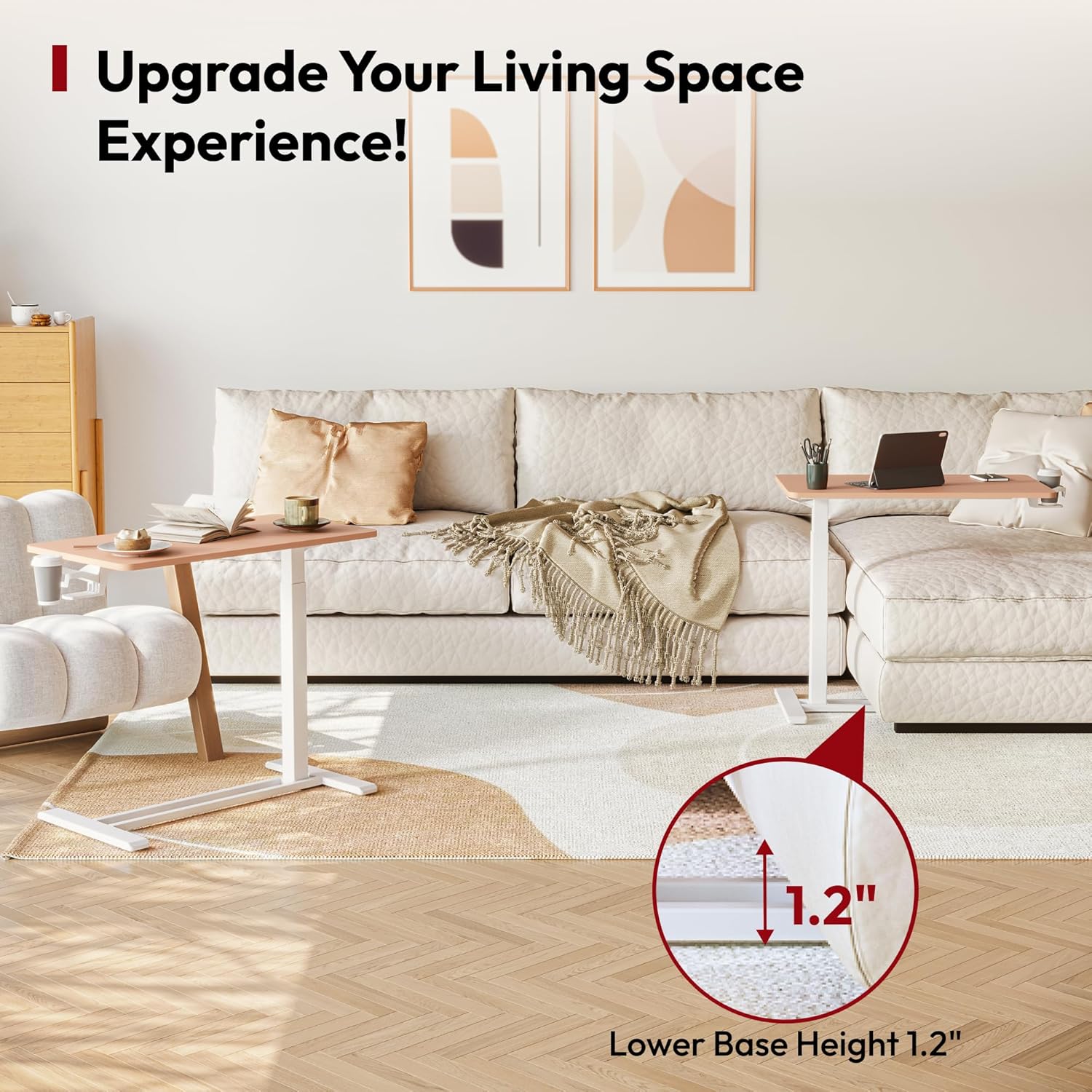 - Hidden Casters-Featuring 4 hidden casters, this overbed beside table glides smoothly for effortless maneuverability. Its low-profile base fits under furniture as low as 1.2", making it a space-saving portable workstation perfect for home or office use.