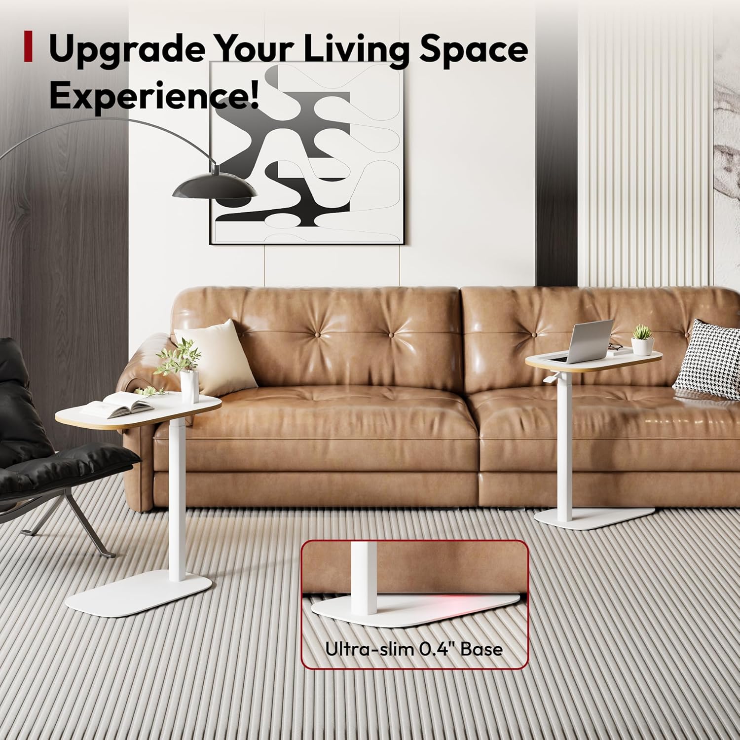- Ultra-Slim Base Design, Conquers Tight Spaces: Fits under furniture with just 0.4" clearance – Slide seamlessly under beds, sofas, or low-profile furniture! Perfect for small spaces, this space-saving bedside table instantly frees up floor area and blends into any corner, from cramped studios to narrow balconies.