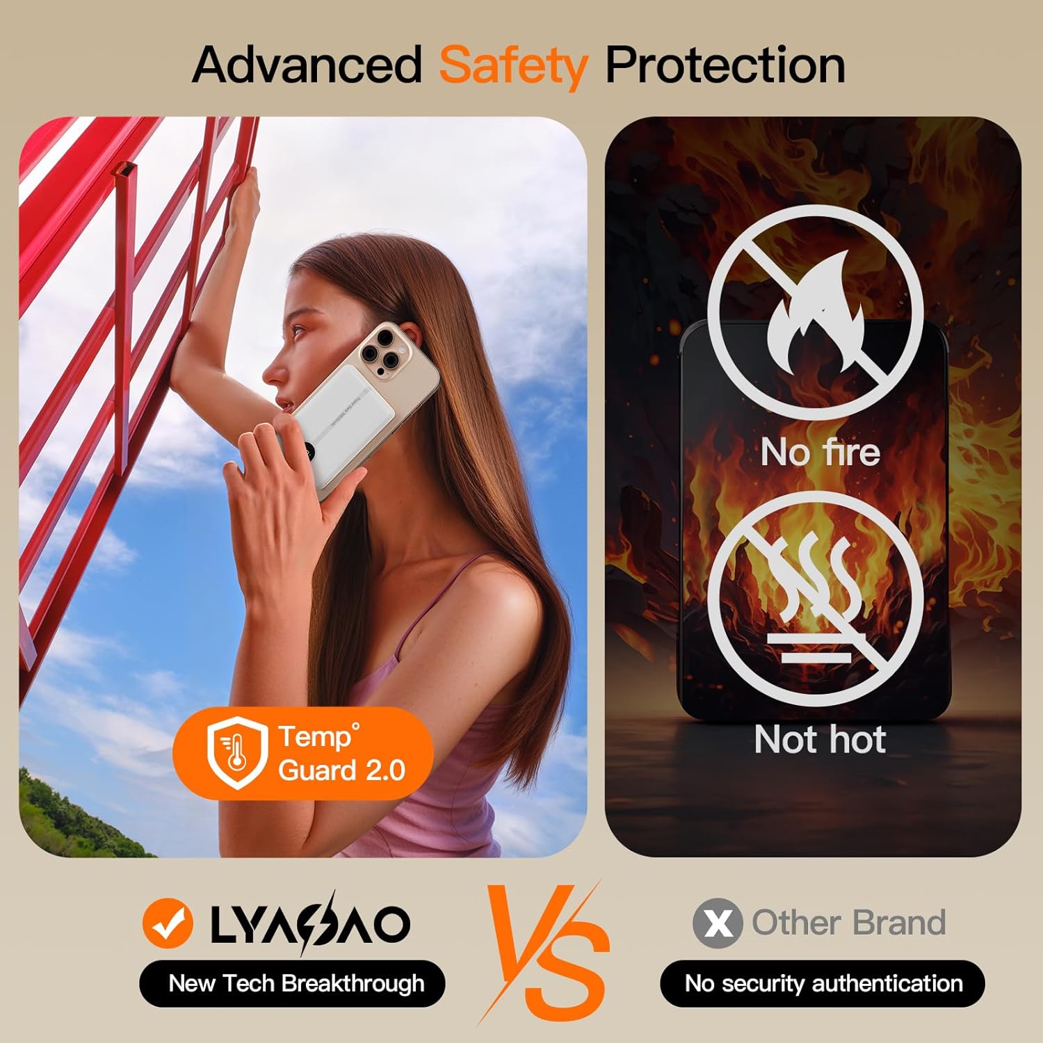 - Strong Magnetic Charging & Wide Compatibility: LYAOAO portable charger is perfectly compatible with iPhone 16/15/14 Pro Max/Pro/Plus, 13/12 series Equipped with 1500g magnetic force, firmly attaches to your phone even during outdoor activities. No more dropping issues! (Note: Remove thick non-magnetic cases for optimal)