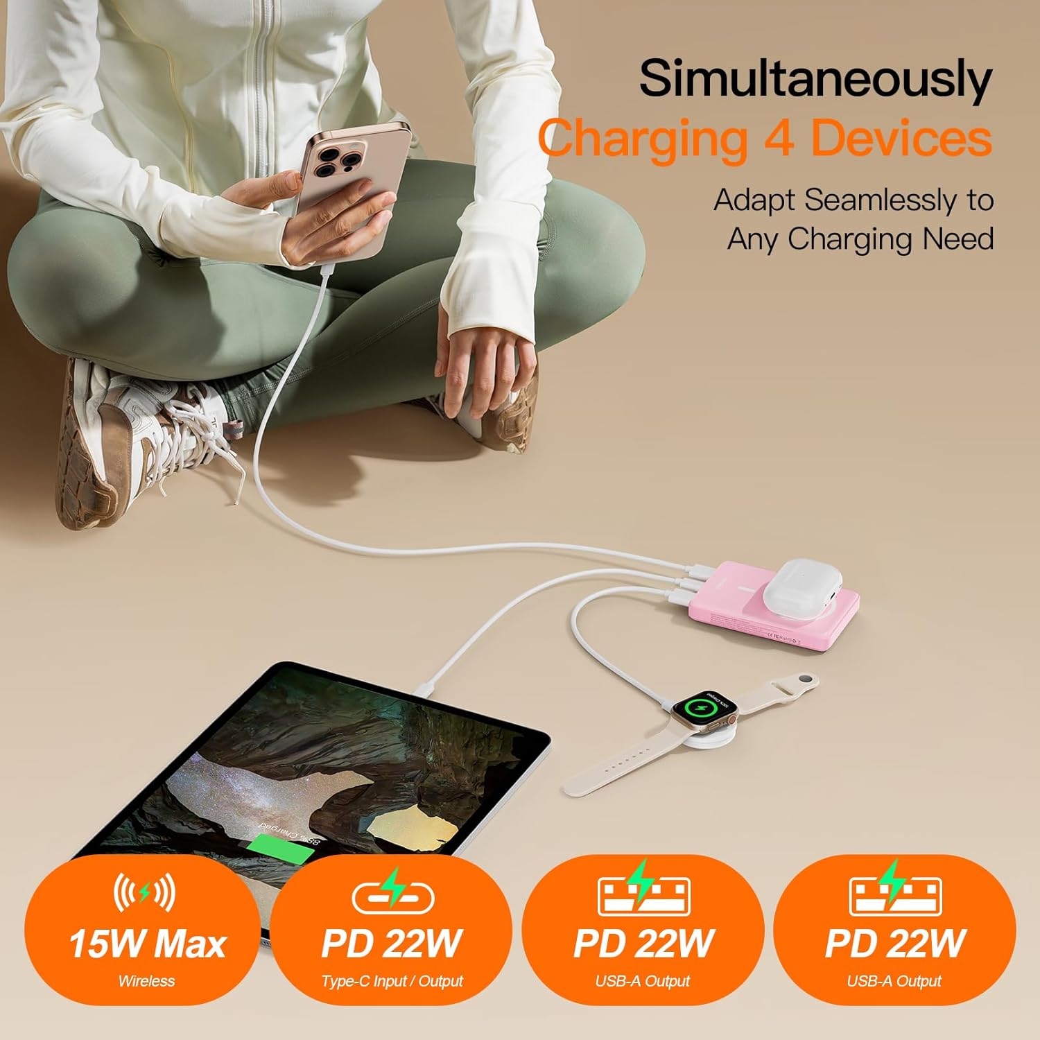 - Super Fast Charging with No Long Waits: Supports fast charging up to 15W wireless fast charging and PD 20W Type-C output. Powerful fast-charging capability allows your device to charge up to 60% in just 30 minutes. The exclusive feature of charging 4 devices simultaneously reduces your charging time and provides you with high office productivity