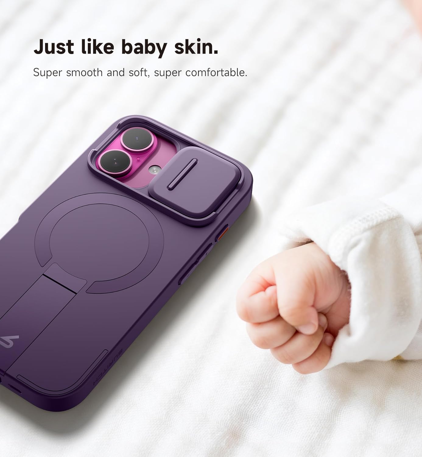 SURITCH for iPhone 16 Case with Magnetic Camera Slide Cover and Adjustable Kickstand, Compatible with MagSafe, Shockproof Bumper Case Slim Protective Cover 6.1 Inch, Dark Purple