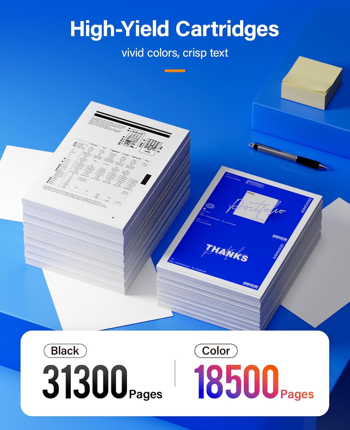 - High Page Yield: 31,300 pages for Black and 18,500 pages for Color toner cartridge (Letter/A4, at 5% coverage)