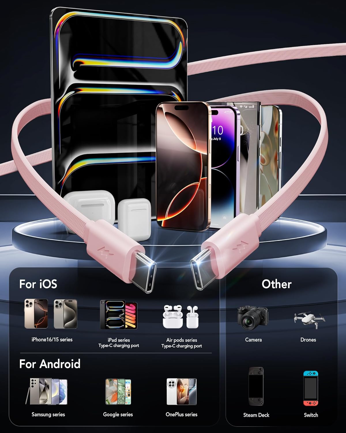 - ă90cm Retractable Cable for Maximum ConvenienceăThe retractable wall charger block comes with two 90cm retractable Type-C cables. The maximum retractable length of the charging cables is 90cm (35.5 inches), perfect for charging Android phones, tablets, or laptops with USB-C ports. The cables are neatly stored, and after unplugging, you only need to gently stretch 1cm to retract them.