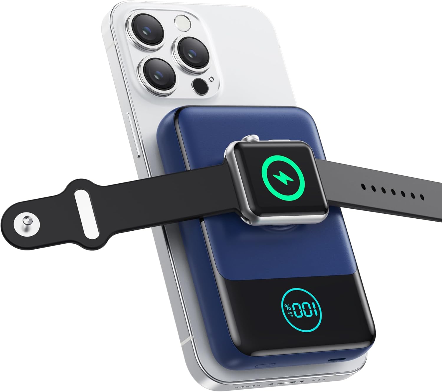 - ă3 Devices Fast Wireless & Wired Charging Power BankăThis battery pack features double-side magnetic wireless charging capability, Supports up to 15W for iPhone/Airpods and 3W for Apple Watch,USB-C Port up to 30W. Supports Fast charging up to 3 devices at the same time.With this powerful and fast-charging portable charger, you can power up all your devices efficiently and conveniently. (USB-C port support input/output)