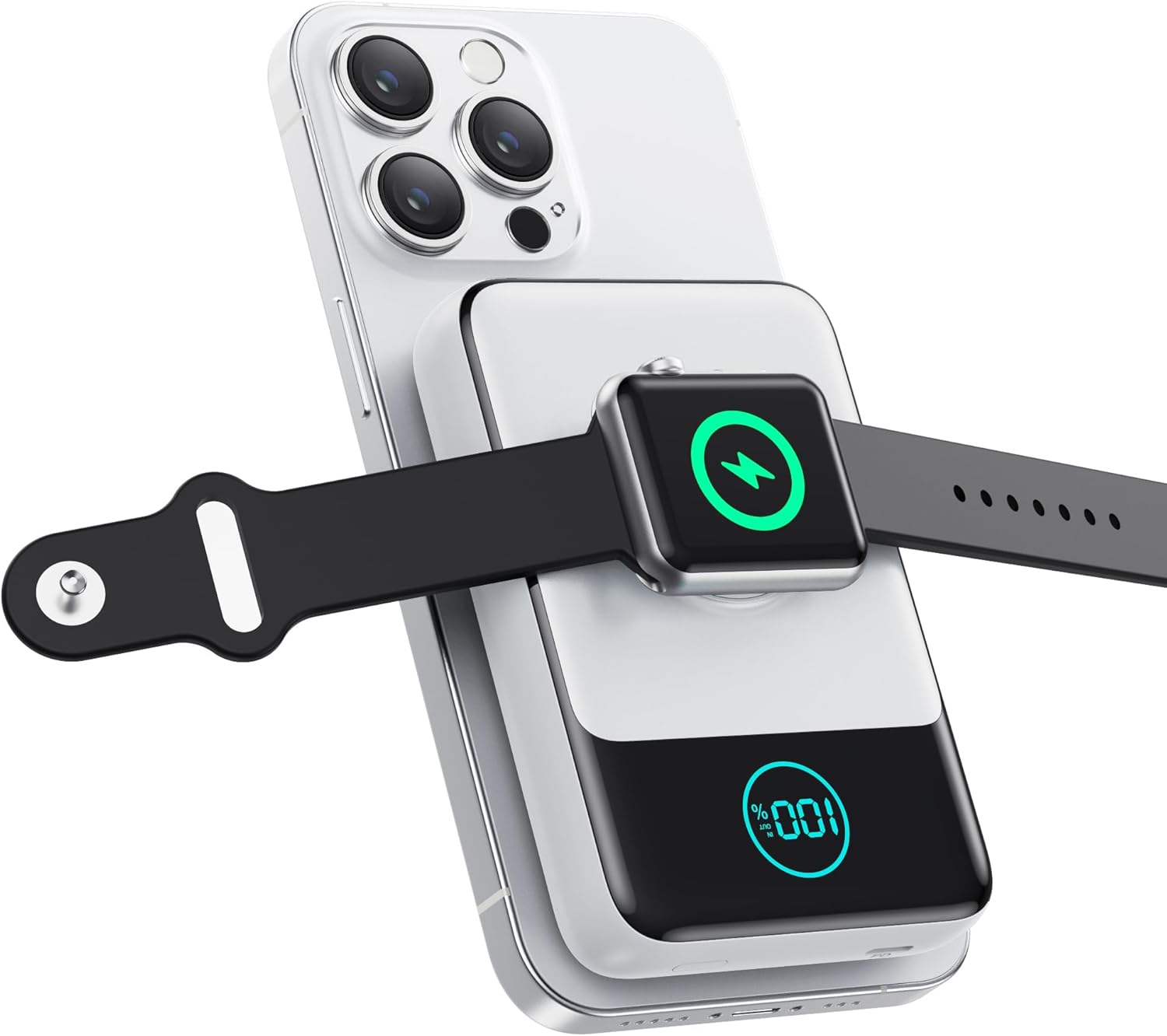 - 【Magnetic Wireless Portable Charger for Apple】This wireless magnetic portable charger compatible with MagSafe Magnetic case, iPhone 16/16Plus/16Pro Max/15/15 Plus/15 Pro/15 Pro Max/14/14 Plus/14 Pro/14 Pro Max/13/13mini/13Pro/13Pro Max/12/12mini/12Pro/12Pro Max, Apple Watch 10/9/8/7/6/5/4/3/2/1/SE 1/SE2/Ultra /Ultra 2 and Airpods 2/3/Pro/Pro 2. (Note: Please use Mag-Safe phone case or without case for wireless charging)
