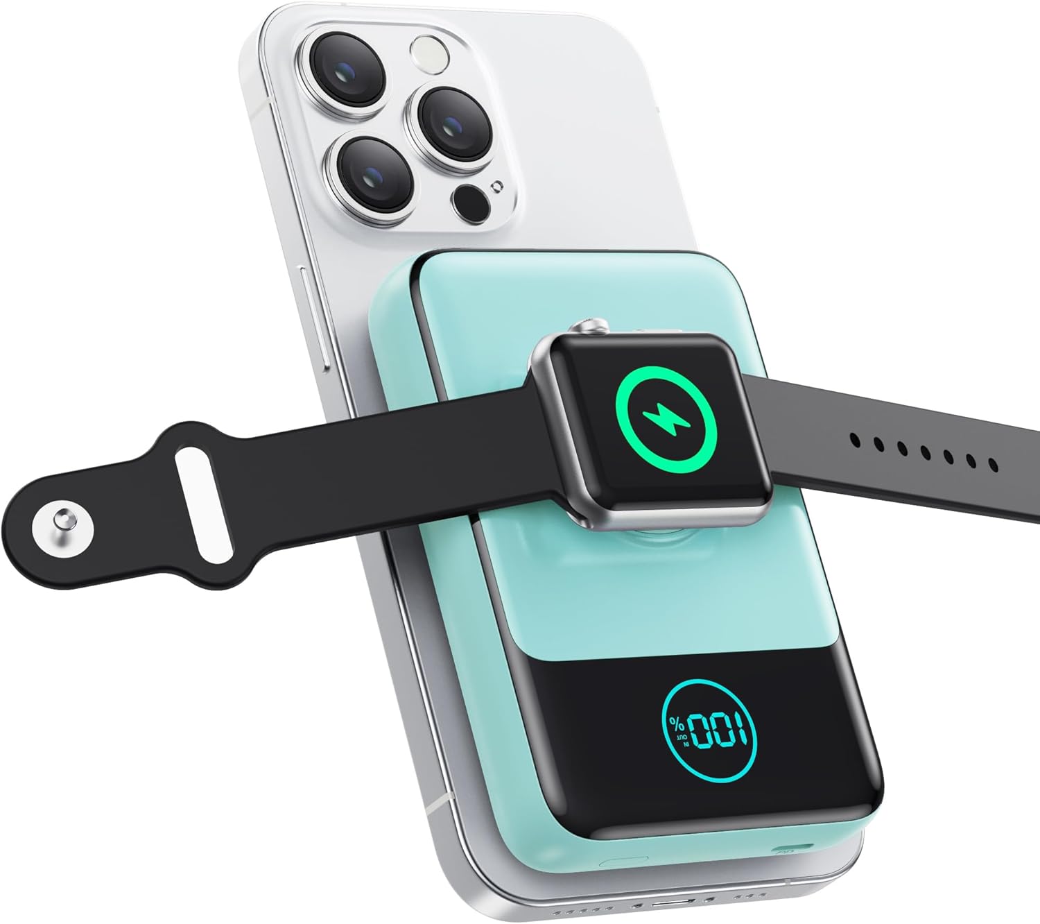 - ăMagnetic Wireless Portable Charger for AppleăThis wireless magnetic portable charger compatible with MagSafe Magnetic case, iPhone 16/16Plus/16Pro Max/15/15 Plus/15 Pro/15 Pro Max/14/14 Plus/14 Pro/14 Pro Max/13/13mini/13Pro/13Pro Max/12/12mini/12Pro/12Pro Max, Apple Watch 10/9/8/7/6/5/4/3/2/1/SE 1/SE2/Ultra /Ultra 2 and Airpods 2/3/Pro/Pro 2. (Note: Please use Mag-Safe phone case or without case for wireless charging)