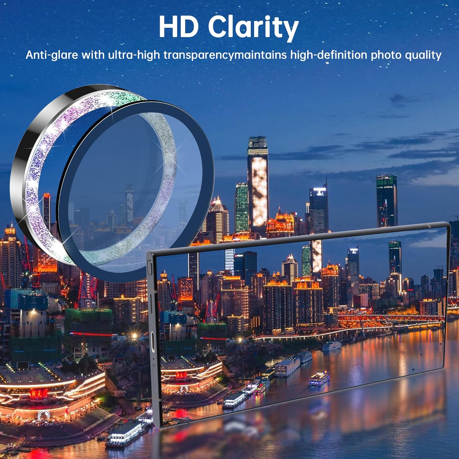 For Samsung Galaxy S25 Ultra Camera Lens Protector, Individual Lens Protector, Ultra HD 9H Tempered Glass Screen Protective Cover, Anti-scratch, Military Grade Drop Protection 2 Set. (Glitter Colorful, S25 Ultra)