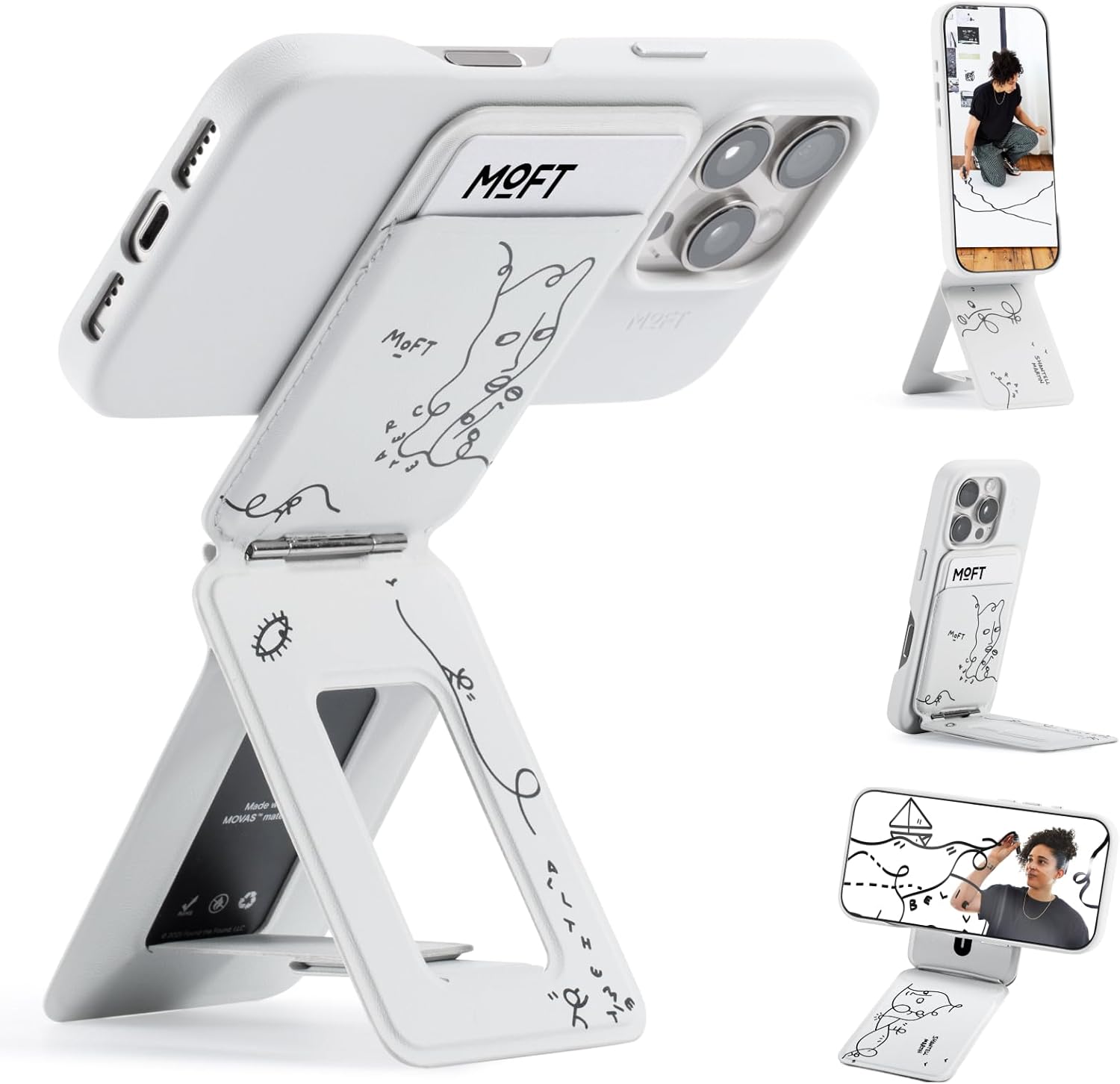 MOFT x Shantell Martin Phone Tripod Wallet for iPhone, Mulit-Angles, Lightweight & Portable Phone Stand, MOVAS Vegan Leather Phone Wallet, Strong Magnets, NFC Card Holder, Misty Cove (with Card Slot)