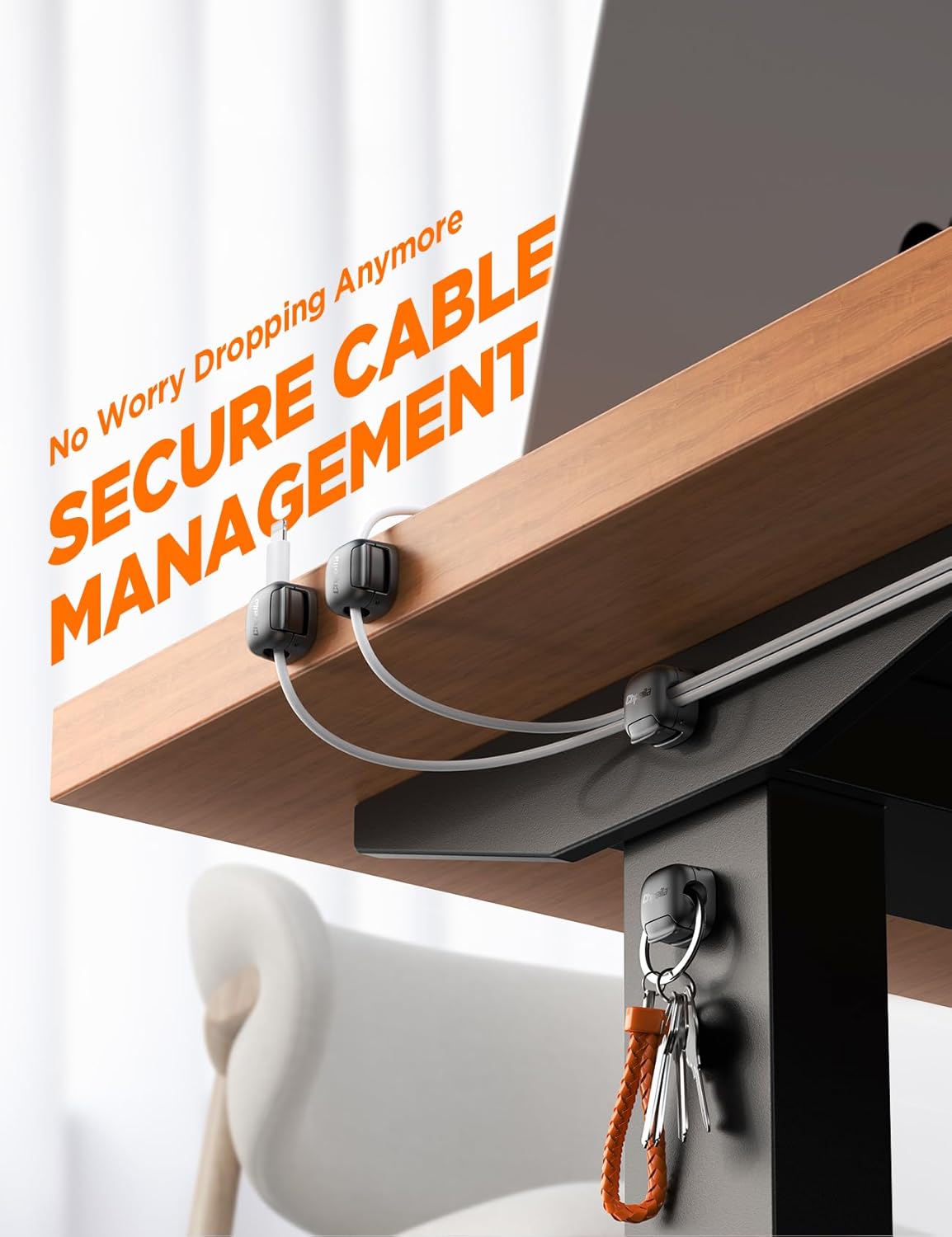 - ✅【Secure & Effortless Operation】Bid farewell to slipping cables! Chfeila cord clips boast an innovative Dual-Spring & Clasp Lock design - a significant upgrade over magnetic or standard single-spring cord organizers. Your cables stay firmly locked indefinitely, resisting the toughest pulls. Yet, accessing your cord is lightning-fast: a simple, one-handed press secures or releases in one second flat. Ultimate desk cable management security made simple. The secure cord holder you need.