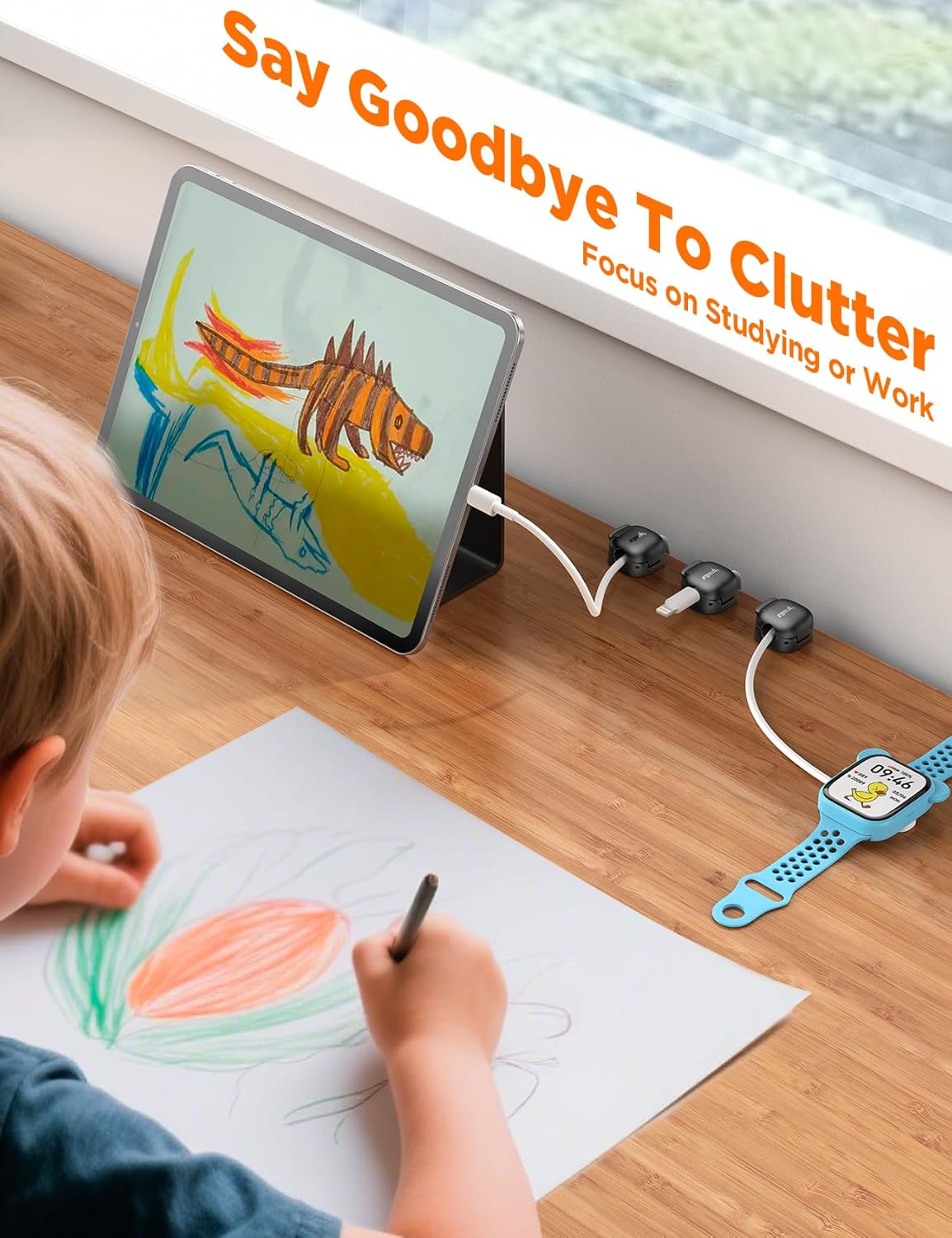 - ✅【Universal Compatibility】With a 0.3-inch (7.5mm) slot, this charger organizer accommodates virtually every cord variety, from charging cables(could hold two at once) and HDMI wires to applicance power cords and ethernet cables. Perfect for cord organizer for desk configurations or as cord clips in any wire management setup, it ensures no cable is left behind. Whether you're a tech enthusiast or minimalist, this versatility simplifies cord management chaos. Use it with wire organizers for cords to create a streamlined, adaptable workspace or nightstand, enhancing daily convenience and reducing frustration!