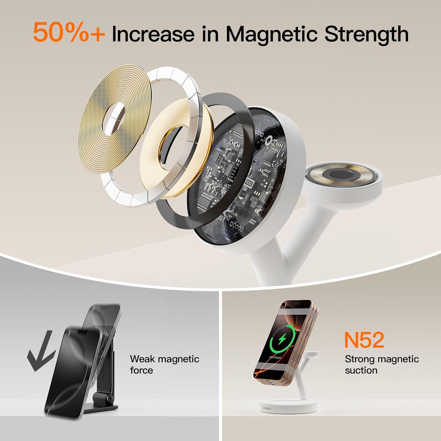 - ăWireless Charging Strong Support Designă: The wireless charger stand increases the sturdiness and stability of the base, optimizes the support structure, and will not break. At the same time, the phone charging part of this magnetic wireless charging station has optimized tilt angle and will not block the camera of iPhone16/15/14/13/12 Pro Max, making viewing the phone more comfortable and enhancing the user experience