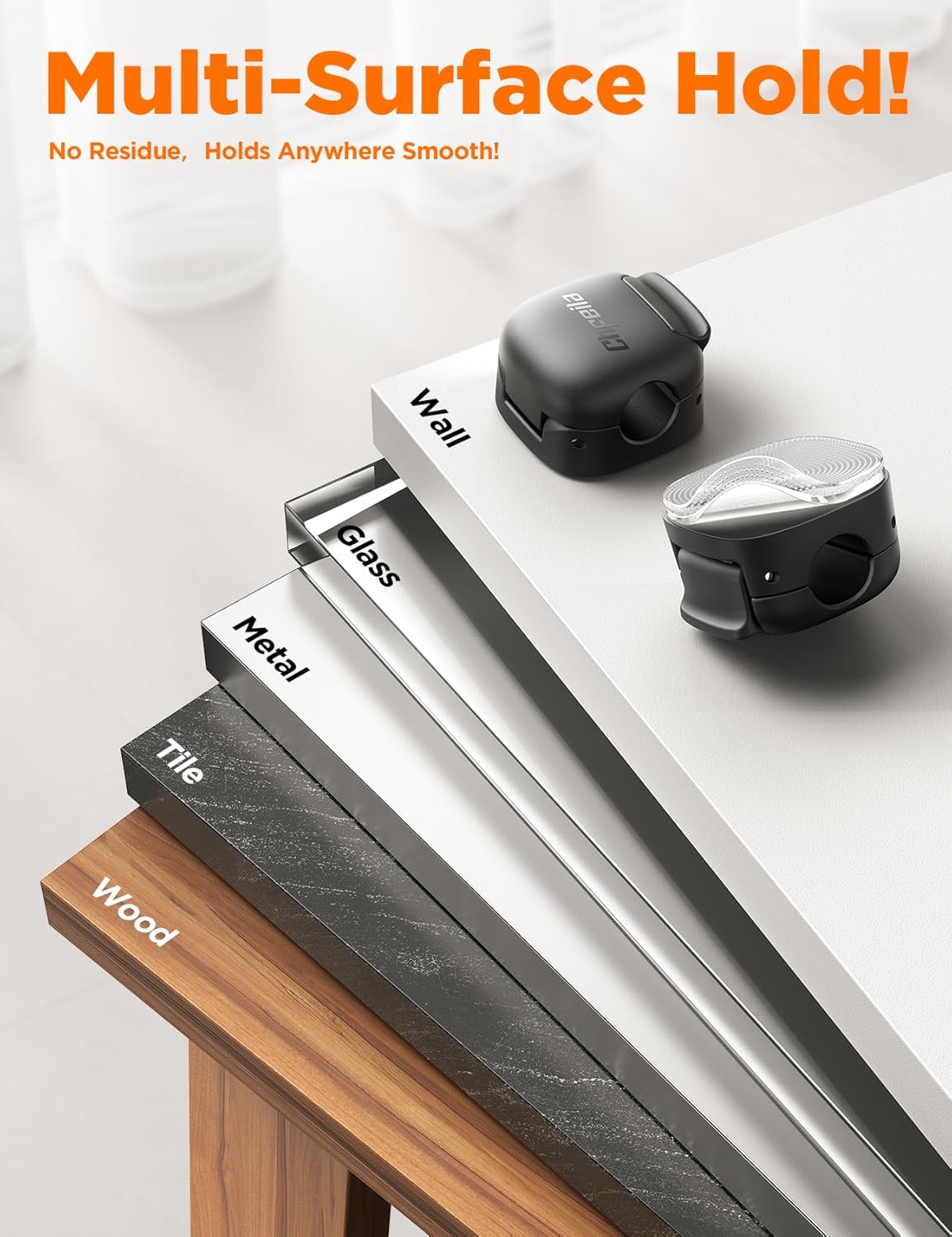 - ✅【Superior Adhesive Strength】Chfeila cable managementstarts with our exclusive adhesive system. Engineered with a unique base and pressure-holding technology, it delivers exceptional, lasting stickiness on diverse smooth surfaces: glass, metal, wood, walls, tile, car dashboards (avoid outdoor use). Removes easily without damage or residue, includes 2 extra pads for replacements. Your reliable cord organizer for desk or cord holder for nightstand. Effortless wire organizers for cords placement.