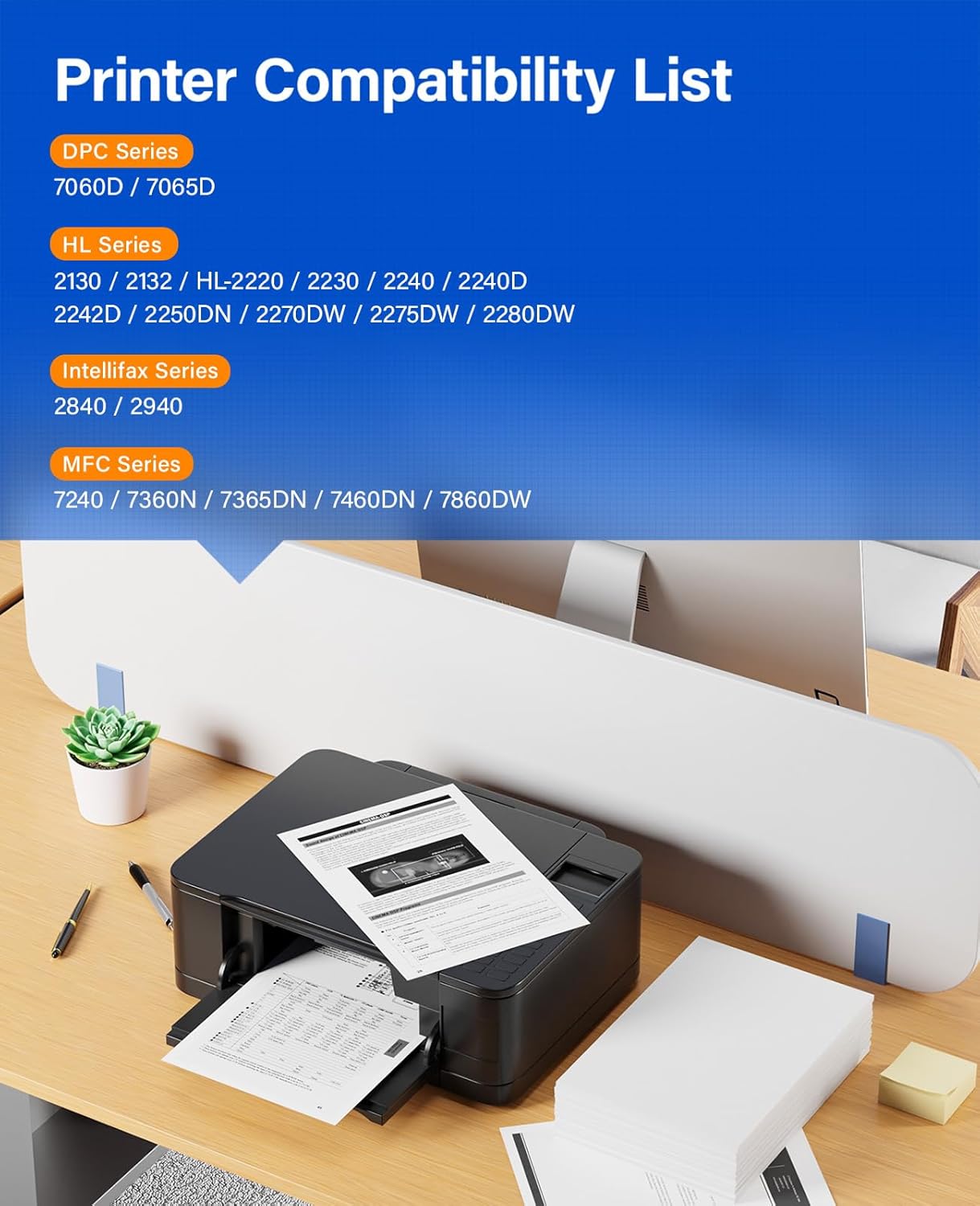 - To use with: Compatible for Brother DCP Printer Series: DCP-7060D, DCP-7065D HL Printer Series: HL-2130, HL-2132, HL-2220, HL-2230, HL-2240, HL-2240D HL-2242D, HL-2250DN, HL-2270DW, HL-2275DW, HL-2280DW Intellifax Series: Intellifax 2840, Intellifax 2940 MFC Printer Series: MFC-7240, MFC-7360N, MFC-7365DN MFC-7460DN, MFC-7860DW