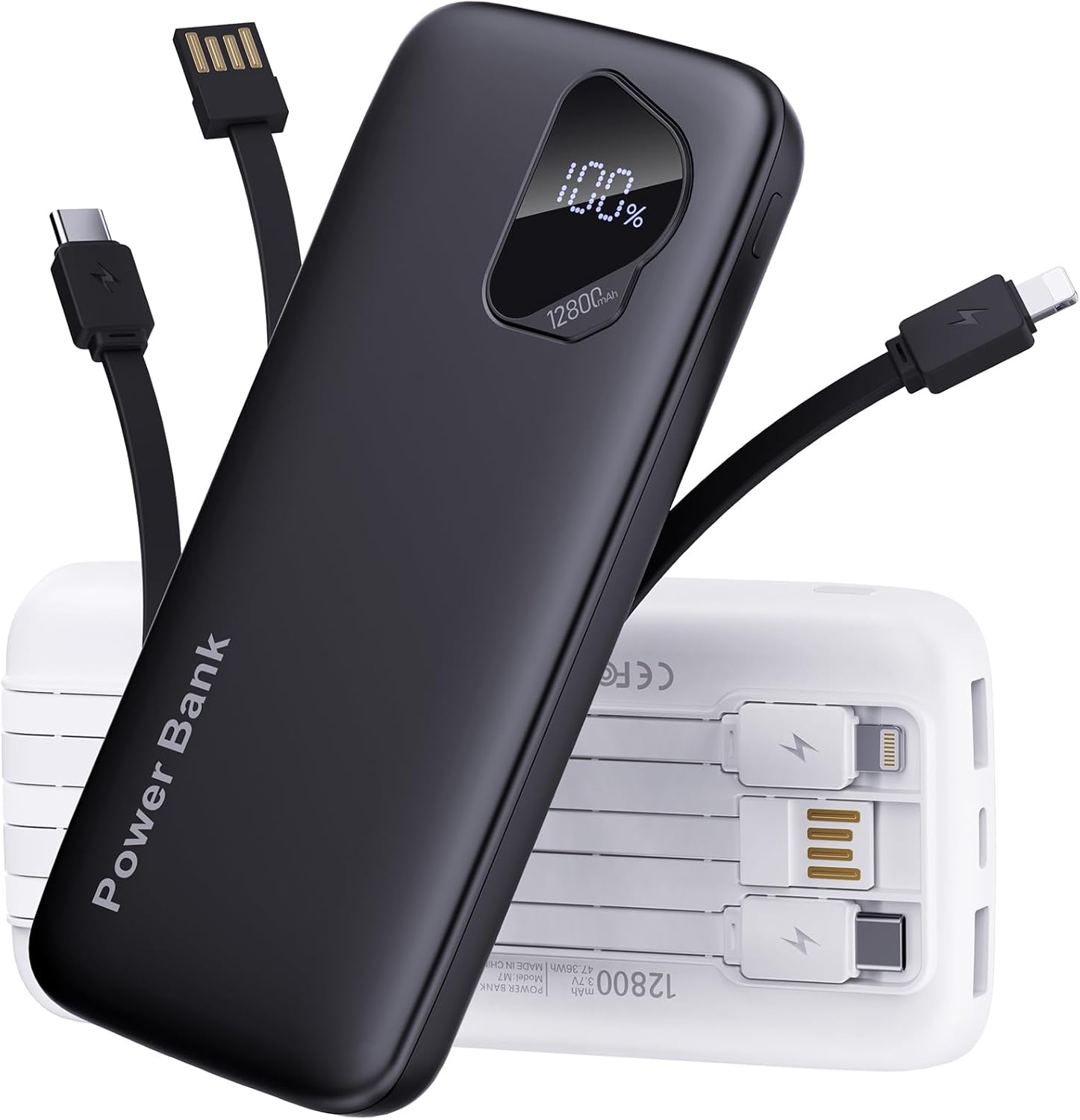 - 🔋【Airline Approved & Ultimate Travel Companion】 Take it anywhere! This 12800mAh power bank meets all major airline carry-on regulations. Its incredibly slim profile and built-in cables eliminate bulk and tangled wires, slip it effortlessly into your pocket or bag. Perfect for hassle-free power on flights, road trips, or daily commutes. Your essential on-the-go power solution!