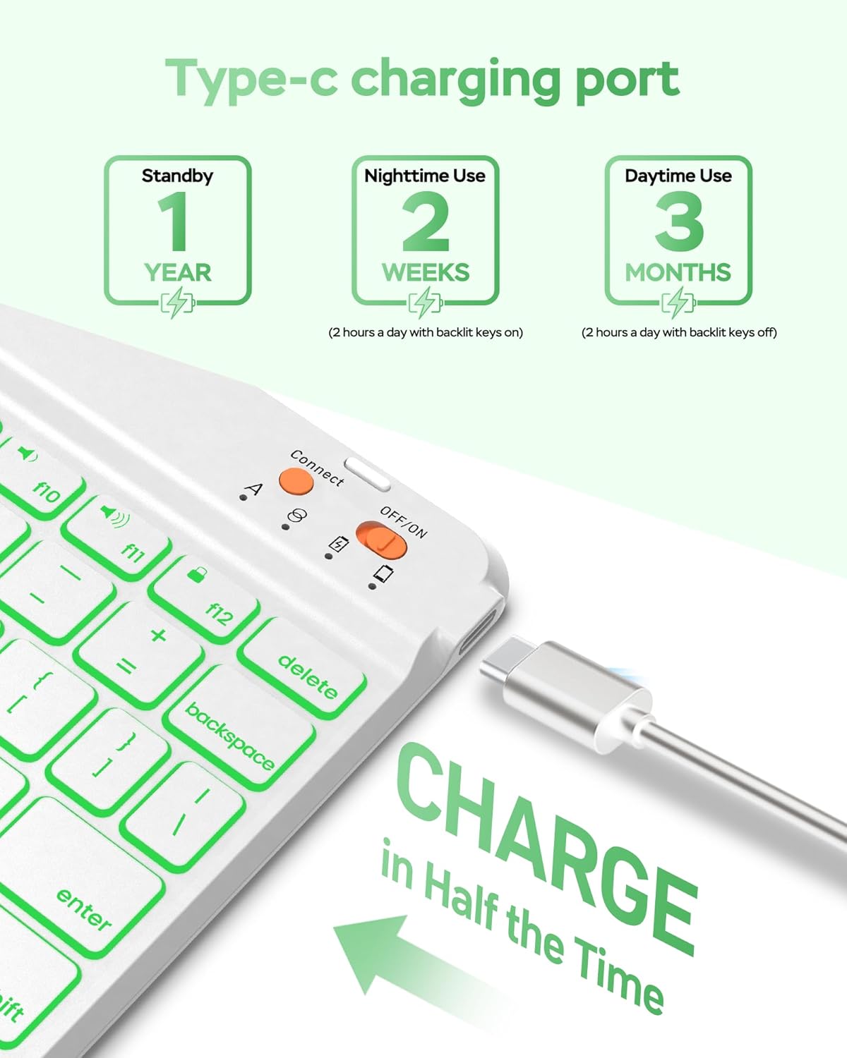- 【Rechargeable Backlit Keyboard】7-color backlit and wireless keyboard allows you to type comfortably even in low light conditions. Use a USB-C charging cable to ensure long-term use.Shortcut keys make it easier for you to use your device.