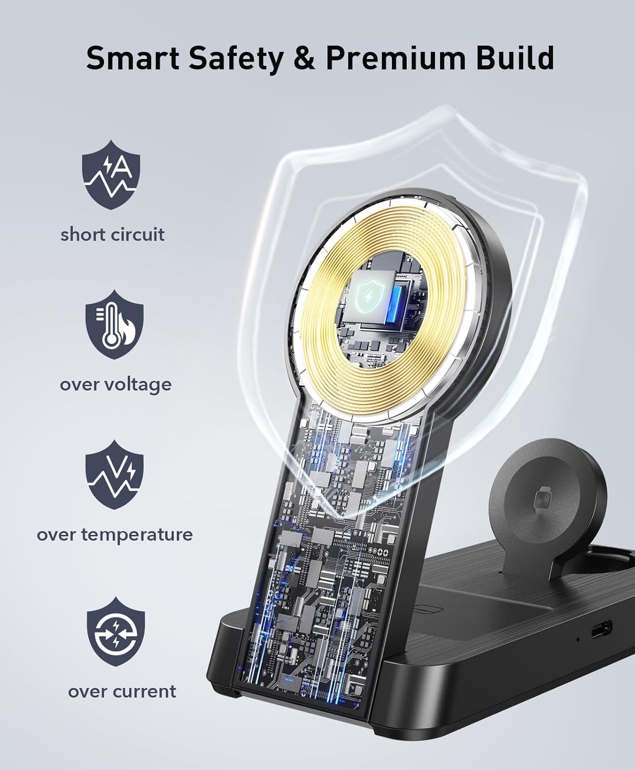 - Perfect for Multi-Scenario Use: 1> Bedside: Nightstand Mode: Soft Charging Indicator Light Ensures Undisturbed Quality Sleep. 2> Office: Vertical Stand for FaceTime/Notification Viewing. 3> Travel: Lightweight (5.28oz). 4> Gift: The 3 in 1 charging station is perfect for Festive Gift(Christmas, Thanksgiving Day and Birthday).