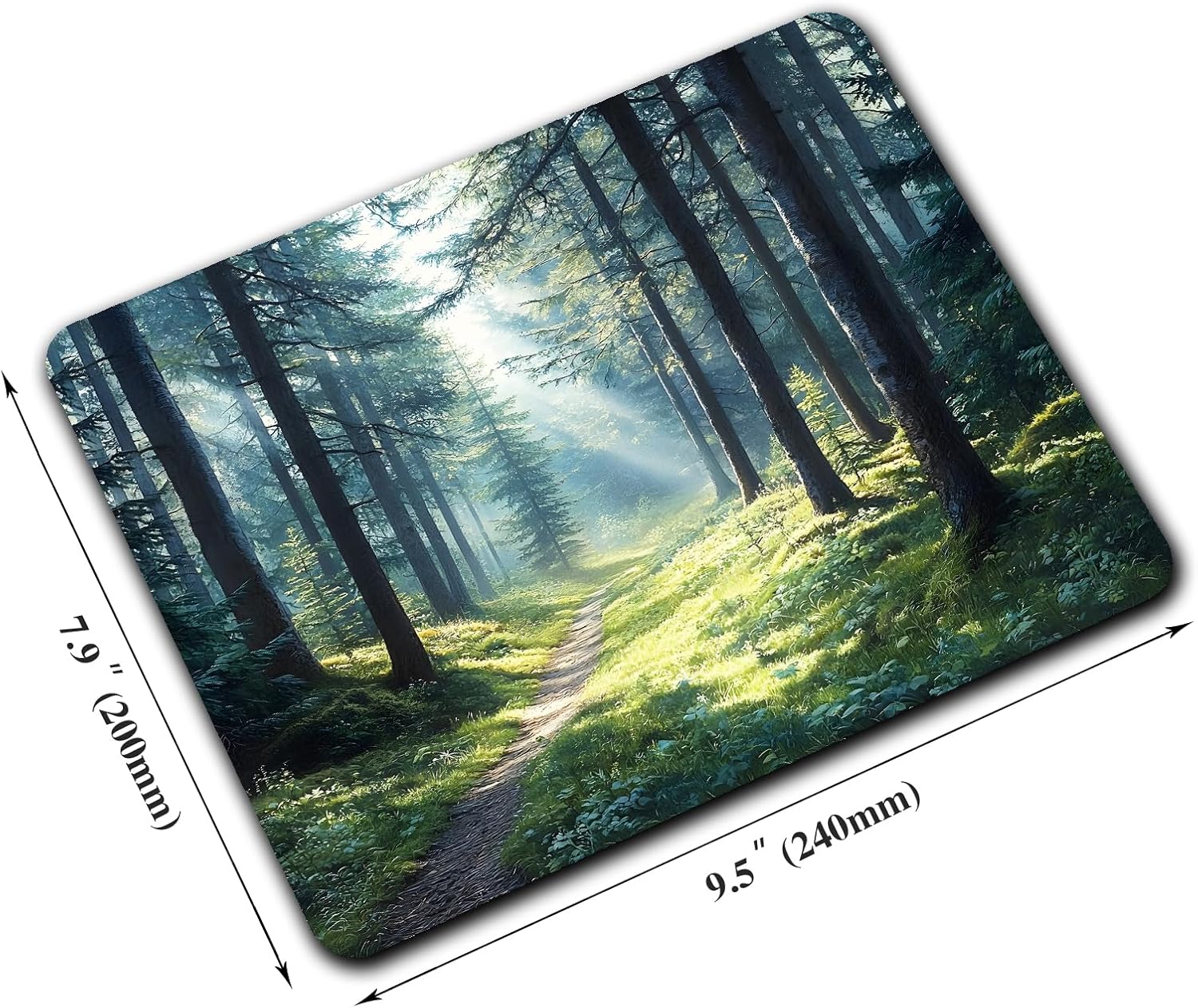 Aesthetic Natural Forest Custom Mouse Pad with Non-Slip Rubber, Small Square Design for Wireless Laptop & Computer Mouse Pads for Desk, 9.5 x 7.9 inch Smooth Surface for Gaming & Office