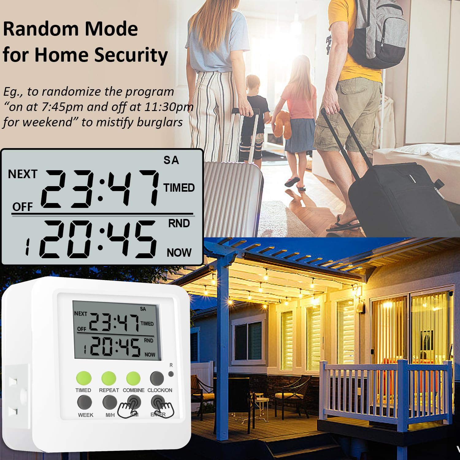 - Feature 1: This timer outlet offers 3 weekly/daily timing programs, with which your will be able to have different on-off schedules for different days or day combinations