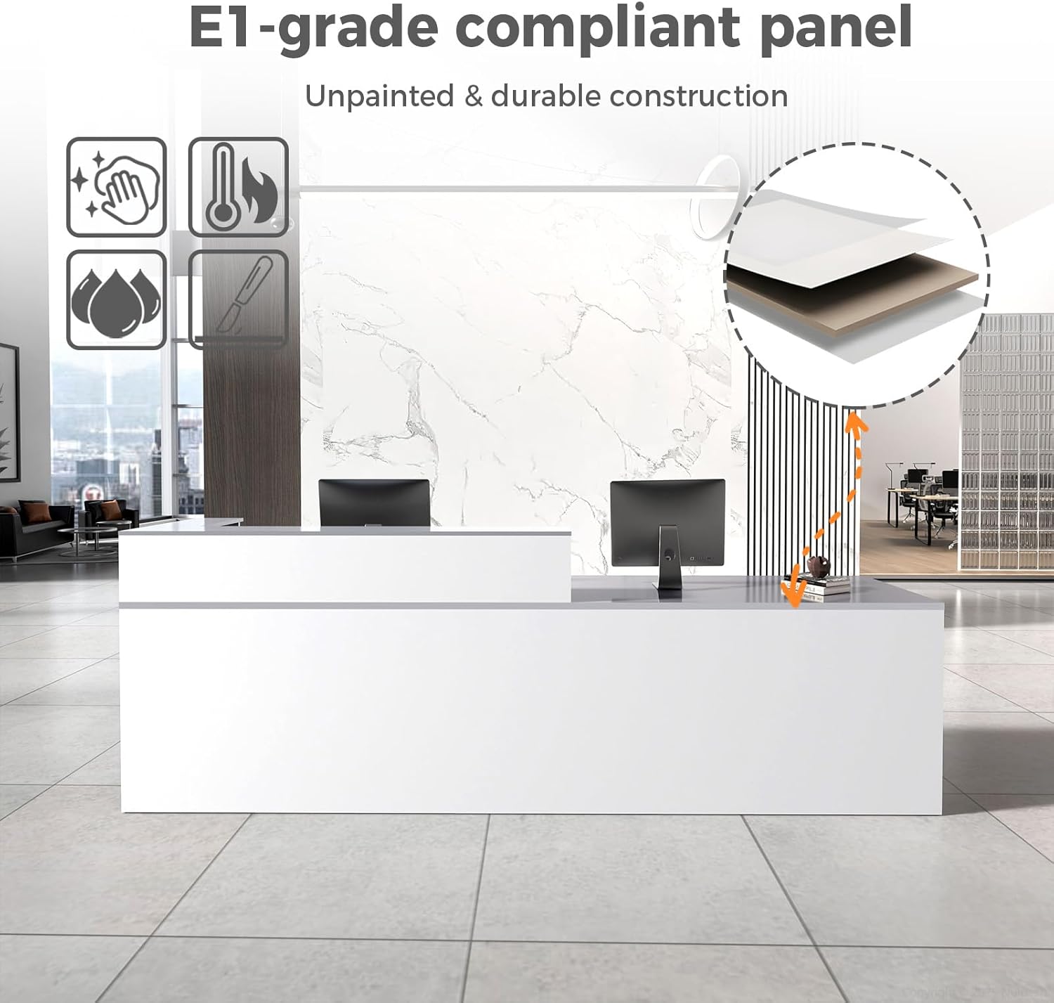- 【Durable E1-Grade Material】 Made from premium E1-grade compliant panel, the desk resists scratches, heat, and moisture—ensuring long-lasting elegance in high-traffic reception areas.
