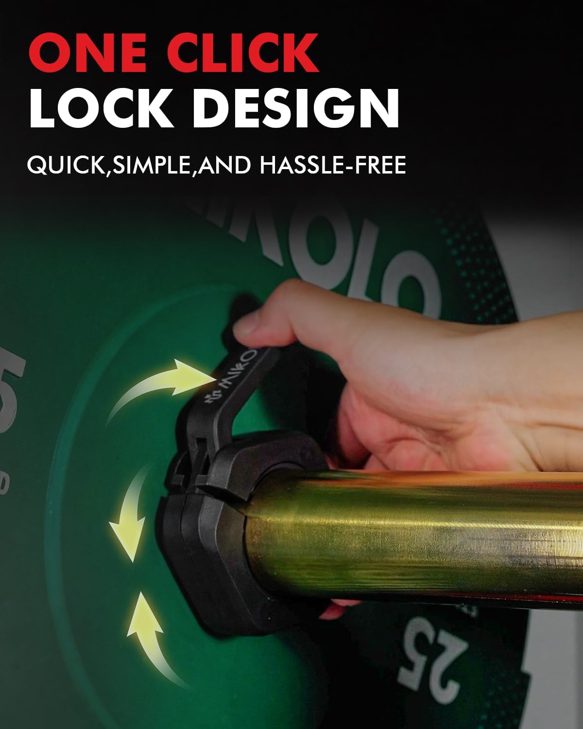 • EASY TO USE: MIKOLO Olympic barbell clamps feature a secure locking mechanism for quick installation and release—saving you time and keeping your workout momentum strong. Perfect for both home and commercial gyms