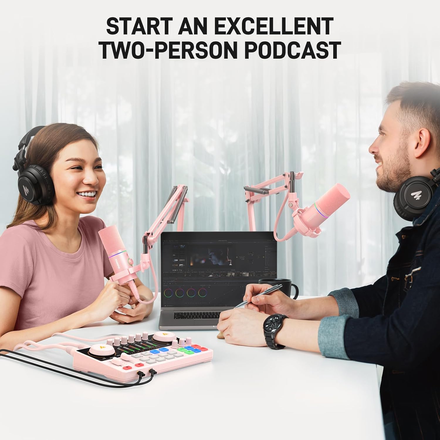 MAONO Podcast Equipment Bundle: Audio Interface mixer with Dual XLR Input for Podcast Streaming - MaonoCaster E2 Gen2 Pink