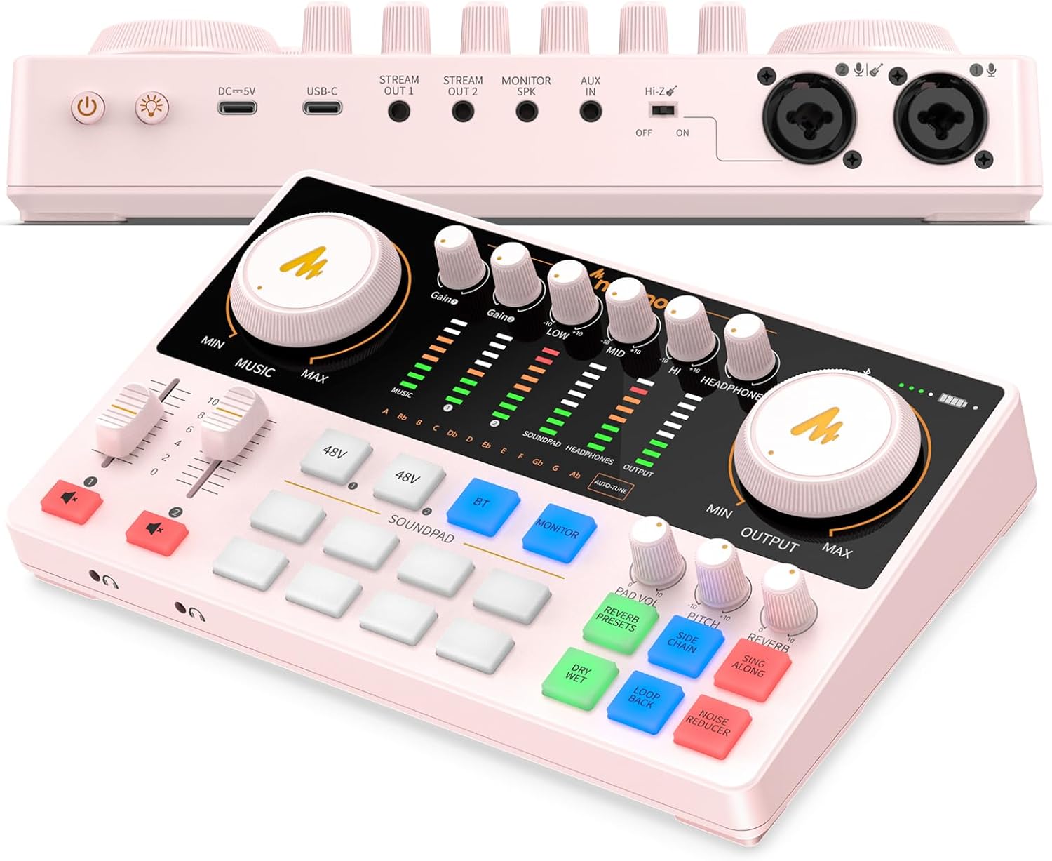 - Flexibility for Any Creator's Setup: The XLR interface gives podcasters and content creators total flexibility with various I/O options. Input-wise, you can use Bluetooth to add clear background music or connect your phone to the AUX-IN/USB-C ports. For output, connect your phone to STREAM OUT1/2 and USB-C ports. For computer live streaming, simply connect to the USB-C port and hit the Loopback button to manage both input and output effortlessly