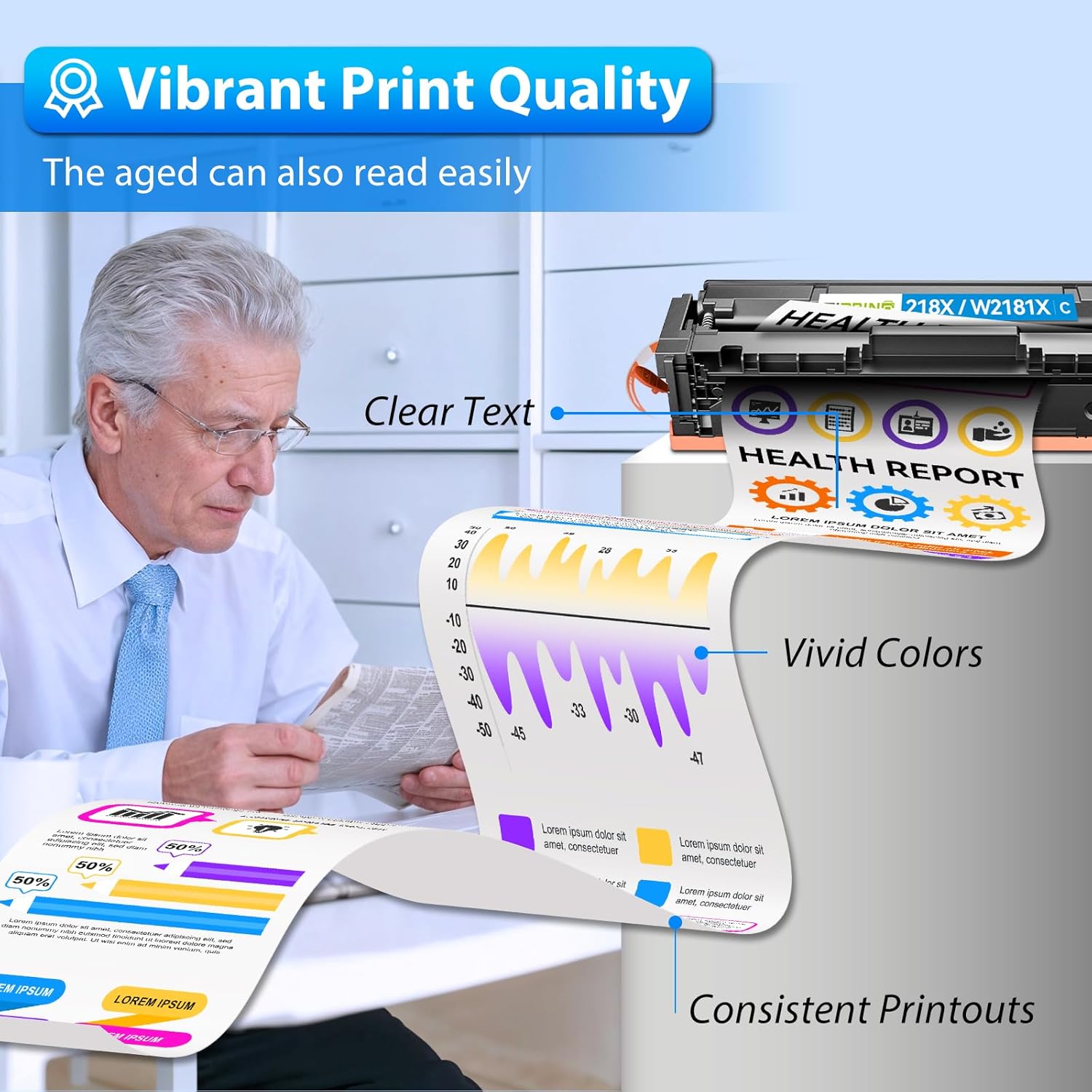 - [Vivid Print Quality] Replacement for HP 218x toner cartridges 4 pack - enhance productivity for office reports/contracts, create vibrant photos/files for home users, support school assignments finish and boost higher score for students.Simplify tasks for all