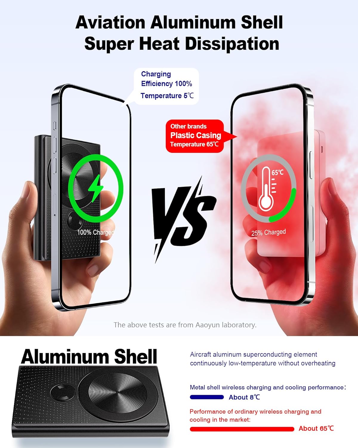 - Certified & Safe Charging: This wireless power bank meets FCC/CE/ROHS/PSE safety standards with 10-layer protection. Features smart temperature control and gentle charging that keeps your devices safe while delivering full power. No overcharging, no damage - just reliable charging every time.