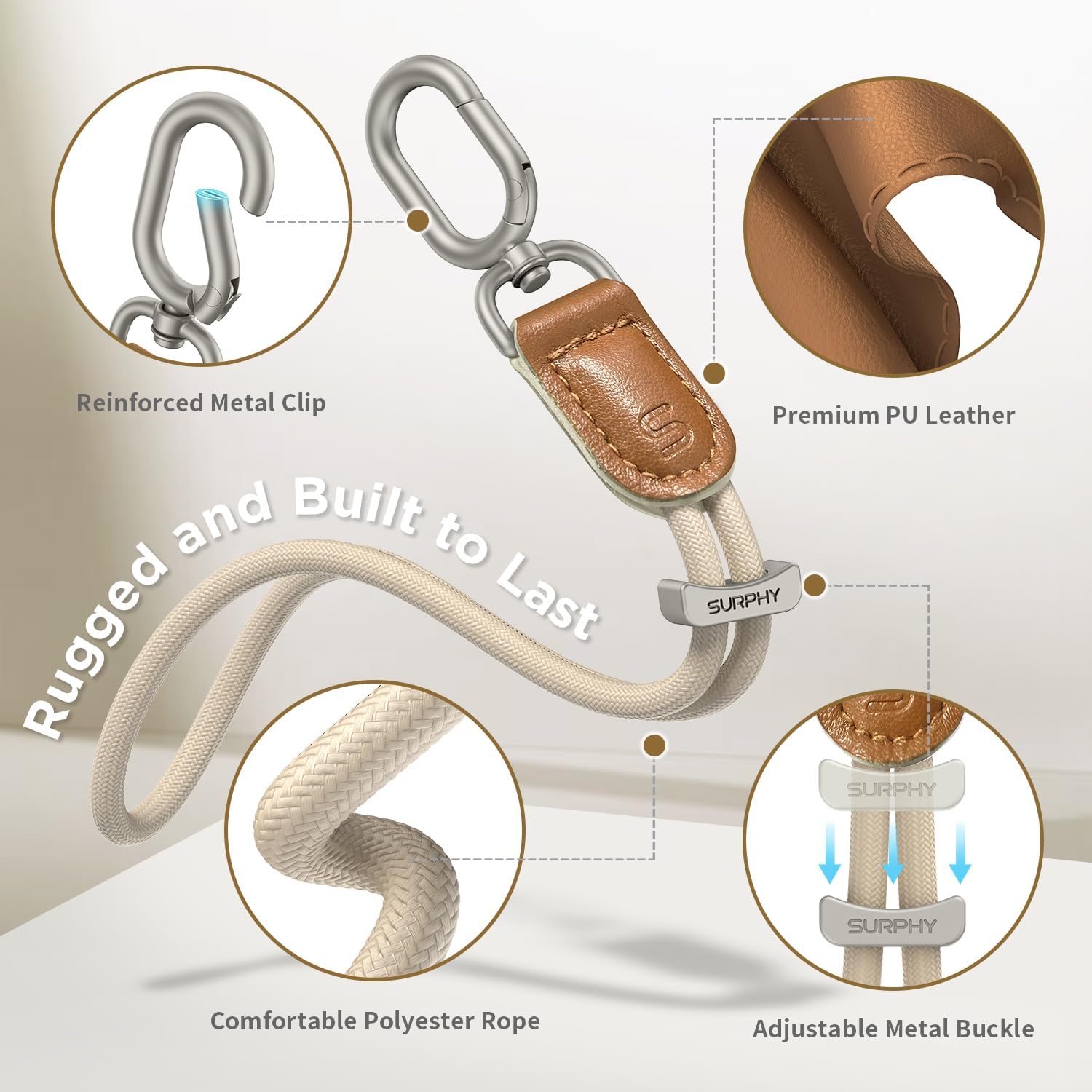 - SURPHY key Lanyard is built to endure The high - quality polyester material is not only soft and lightweight but also highly resistant to wear and tear; the metal clasp and keychain components are crafted from robust materials that can withstand frequent use and various environmental conditions; Whether you're using it daily in urban areas or taking it on outdoor adventures, this wrist strap will maintain its functionality, providing you with reliable service for a long time