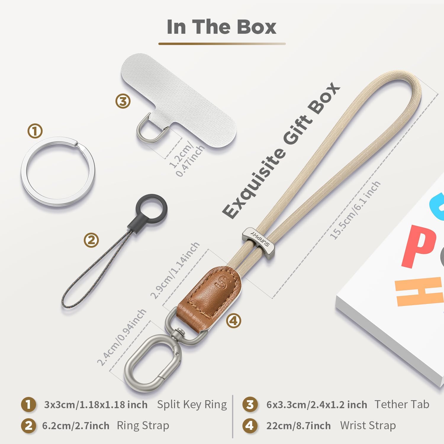 - Multi - purpose Wristlet Keychain: The SURPHY keychain is a meticulously crafted ensemble that seamlessly integrates a Phone Tether Tab, a robust Stainless Steel Key Ring, and a compact Lanyard; this ingenious combination not only ensures a rock - solid connection to a wide array of products but also makes for effortless carrying; whether it's your keys, phone case, airpod, camera, USB flash drive, ID name tag badge, or any other portable essentials, this key chain serves as the perfect